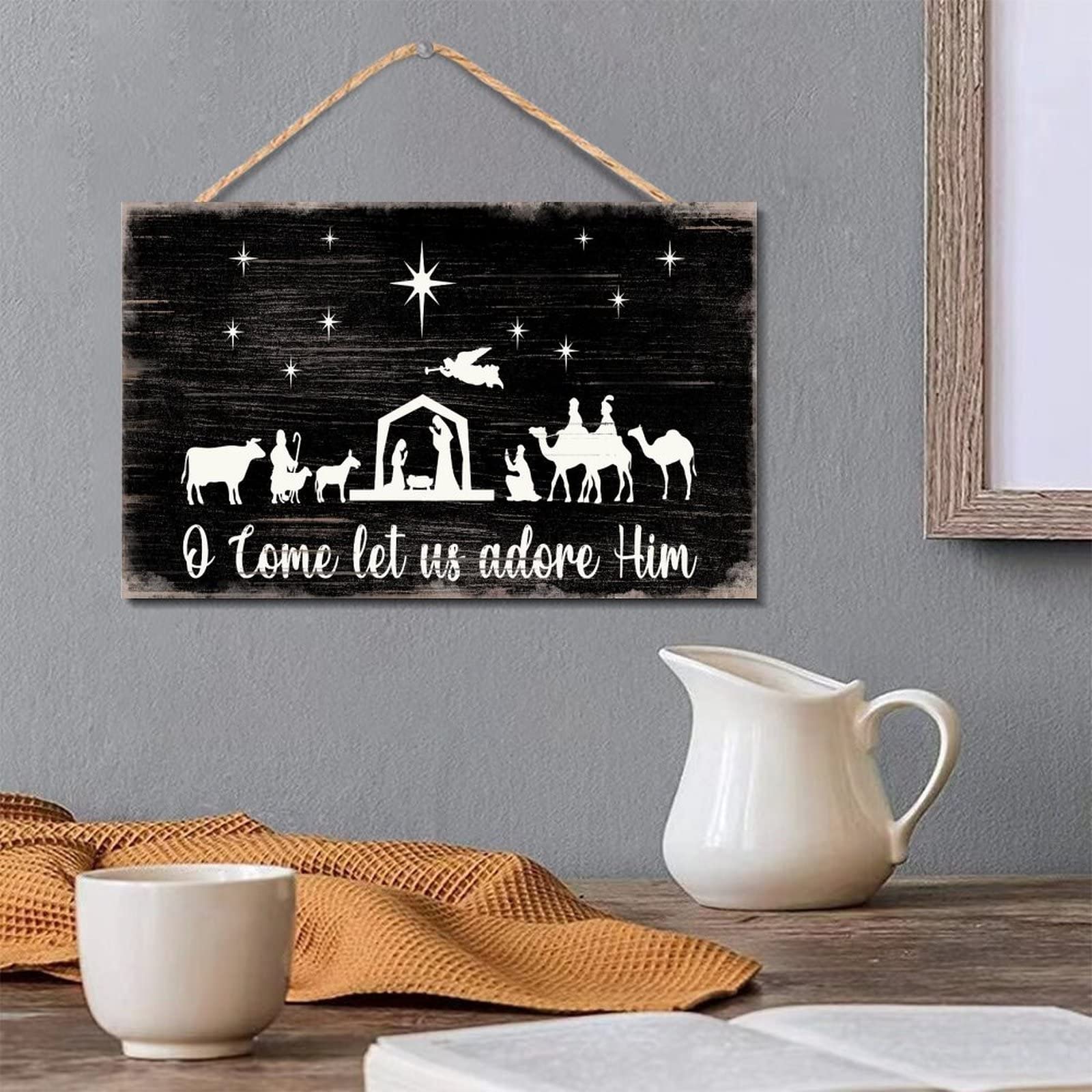 Lustiges, Gerahmtes Holzschild Mit Aufschrift "O Come Let Us Adore Him", Kunstwerk, Dekoration Für Veranda, Land, Holzschild, Weihnachten, Krippe, Zuhause, Wanddekoration, Geschenk, 30,5 X 30,5 Cm