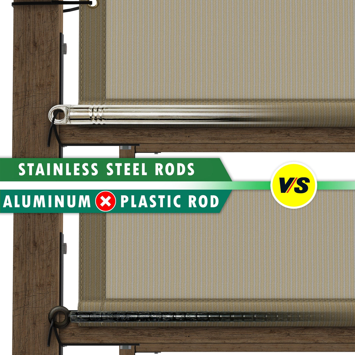 ColourTree Pergola Sun Shade Replacement Cover SPF 50 Commercial Grade 260gsm Fabric For Patio Includes Stainless Steel Weighted Poles, Beige 12 X 160 Feet