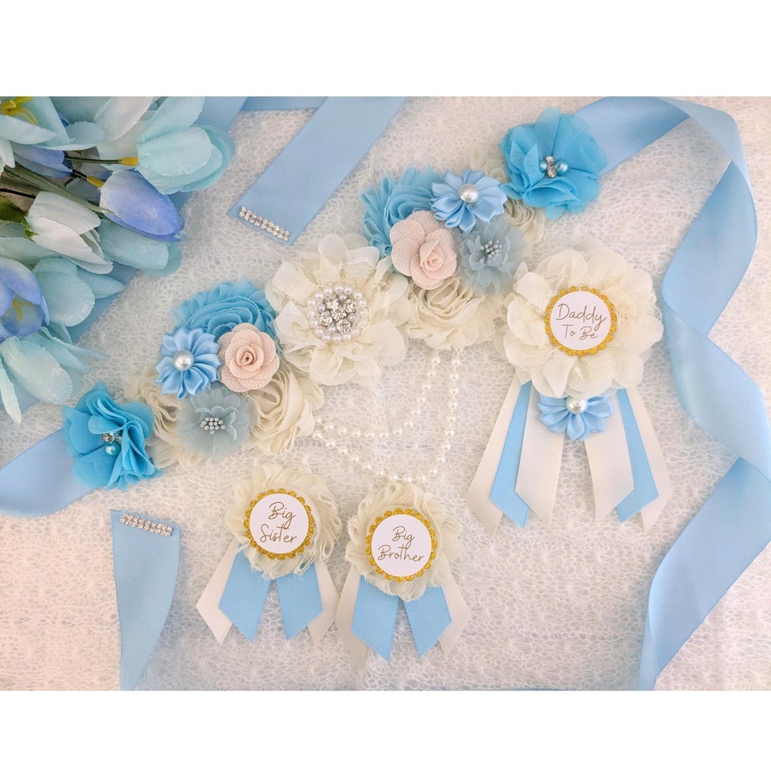 CoolerthingsDG, Babyblau, Mutterschaftsschärpe Und Ansteckblume Für Werdende Papa – Babyparty Schärpe Baby Junge Schwangerschaft Schärpe Andenken Baby