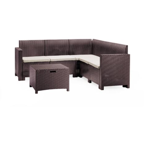 Couchtisch Für Den Außenbereich Aus Grauem Synthetischem Rattan Und Vida Xl Glas