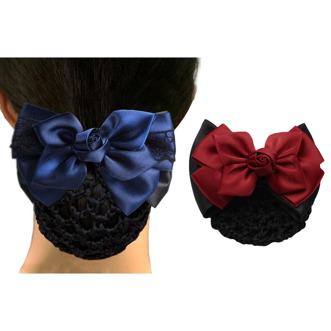 Women Hair Bun Cover Net Hair Net Bow Decoration Satin Bow Hair Clip French Hair Clip Flower Hair Accessories For Stewardess Banks Hotels Restaurant