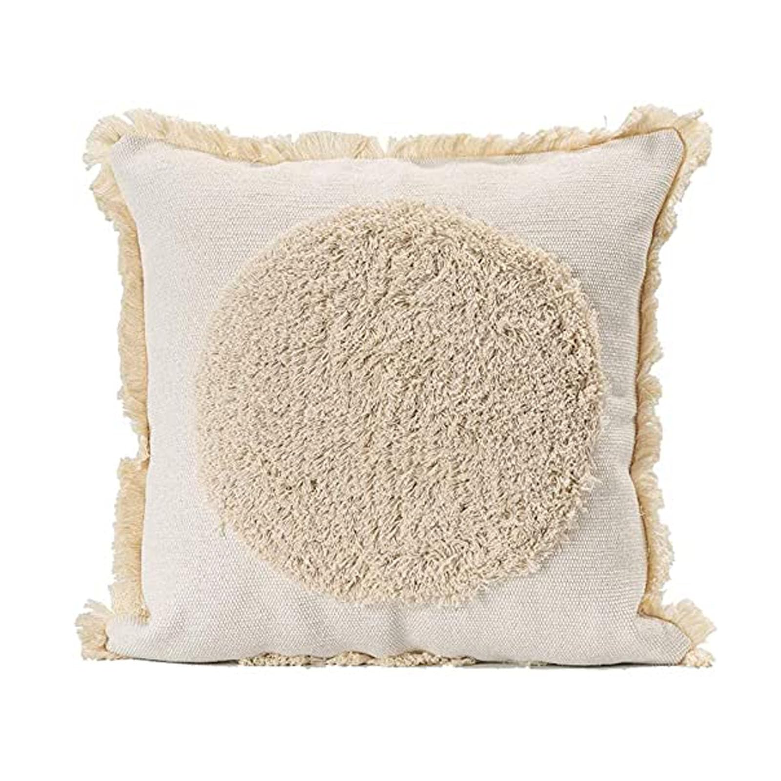 Mocofo Kissenhülle Cremefarben, Weiß, Grau, Gewebt, Getuftet, Quaste