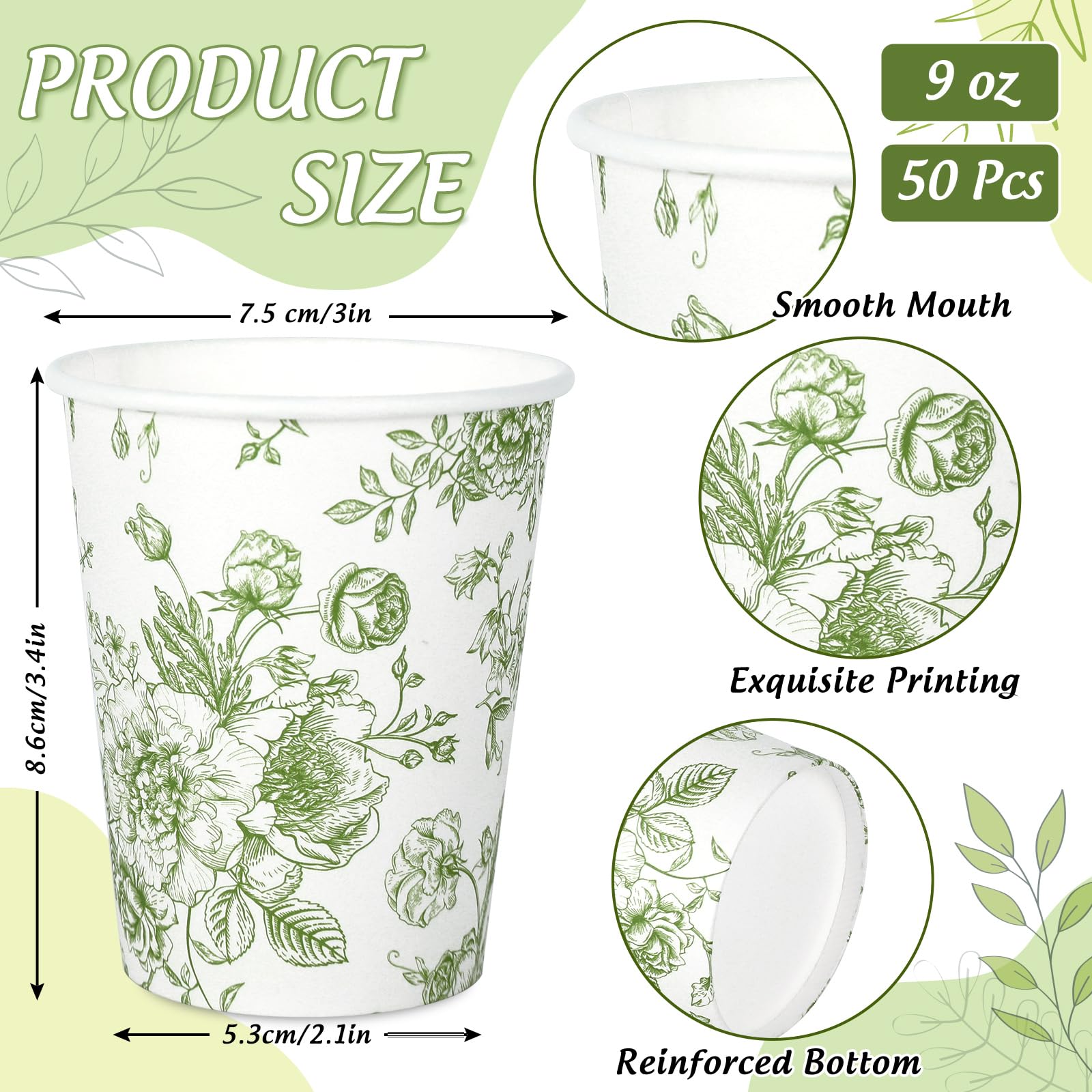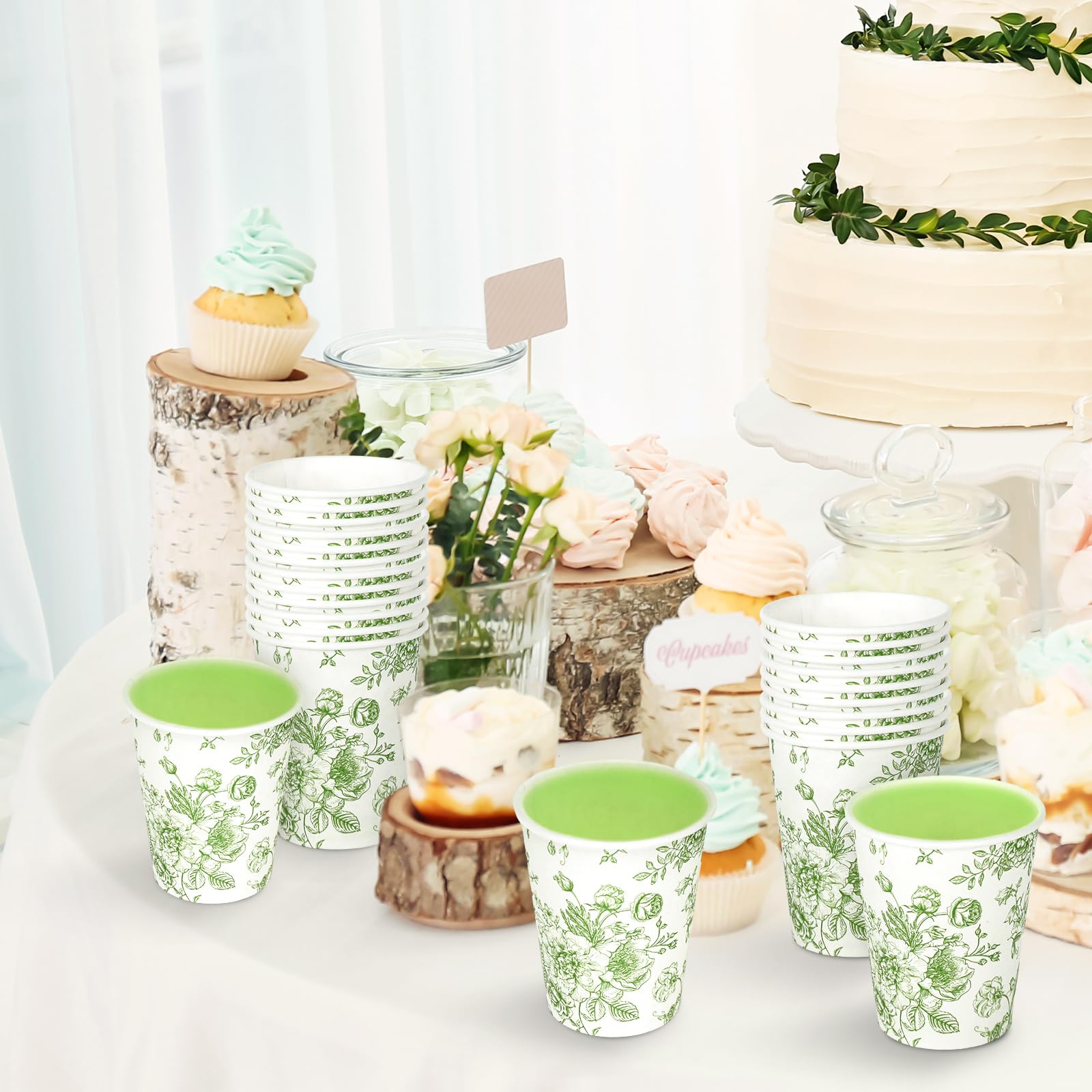Haooryx Wedding Coffee Cup Sleeves - Pack Of 50 Eucalyptus Green Coffee Tea Cups Drinks Cups Sleeves Made Of Disposable Kraft Paper Waterproof Weddings Anniversary Parties Decorative Table Decoration