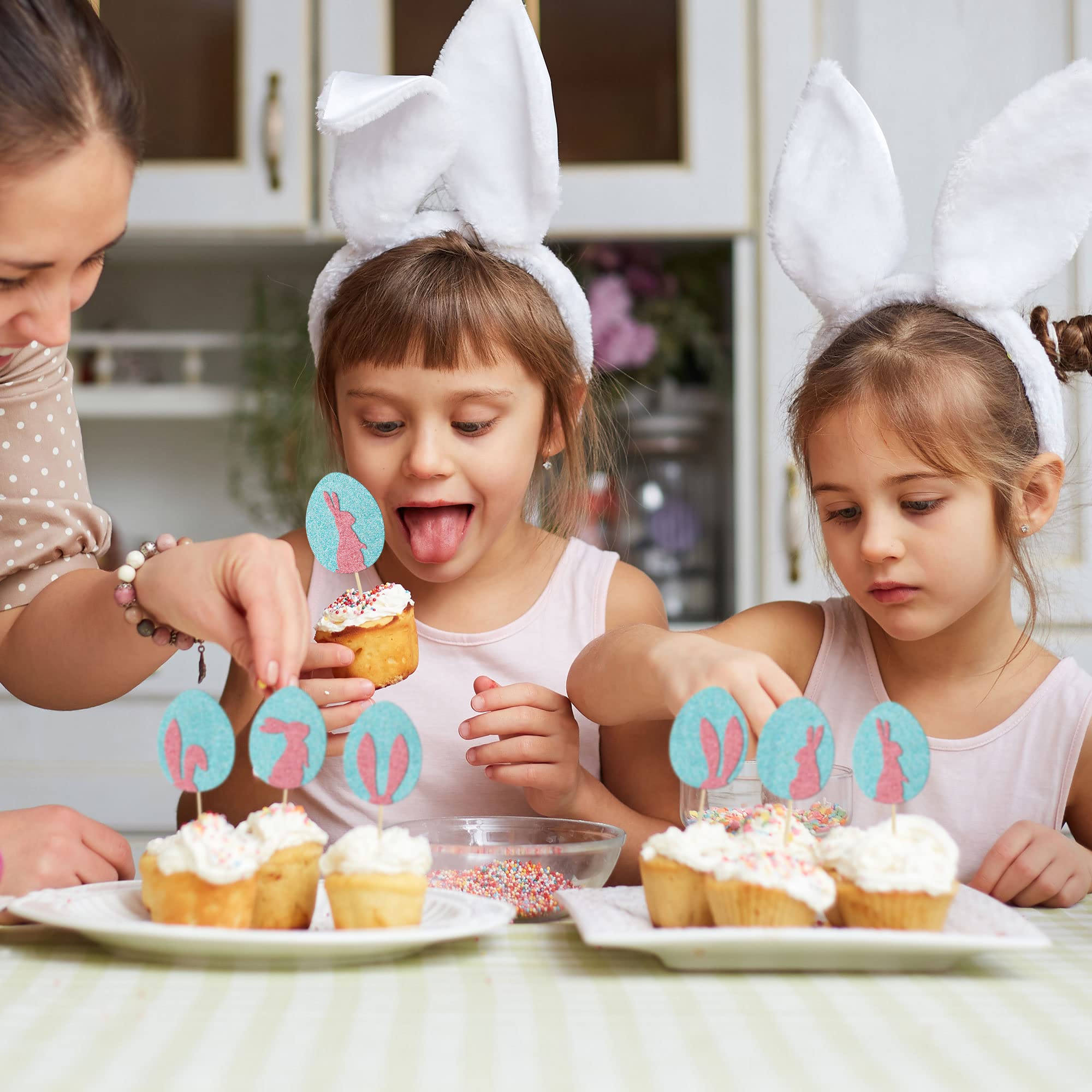 Gyufise Cupcake-Topper Mit Osterhasen-Ohren, Rosa Glitzer, Hasen