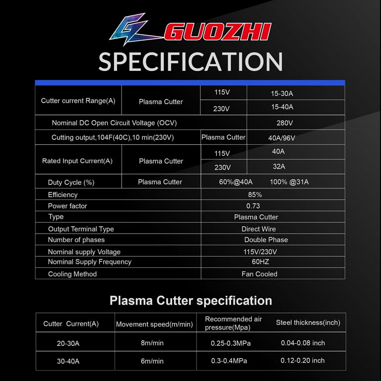 GZ GUOZHI Plasma Cutting Machine 55A High Frequency Non-Touch Arc