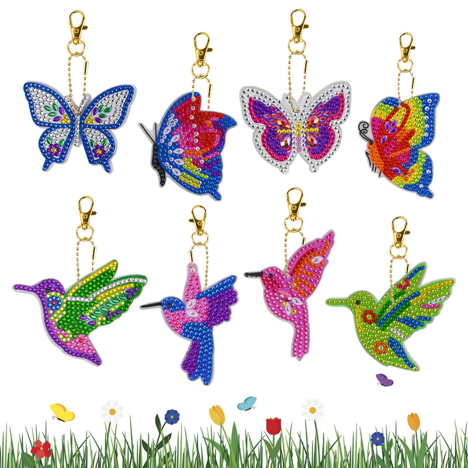 Basteln Frauen 6pcs 5D DIY Bunte Sommer Schmetterlinge Diamond Kunst Malen Diamond Painting Schlüsselbrett Schlüsselanhänger selber machen ist nicht nur eine schöne Beschäftigung für dich selbst, sondern auch für Freunde oder Familie. Du kannst die Anhänger, die immer in einem Set aus mehreren DIY-Schlüsselanhängern kommen, auch gerne mit deinen Liebsten zusammen erstellen Enthält 6 Stück 5D DIY-Schlüsselringvorlagen mit verschiedenen Sommer-Schmetterlingsdesigns, Schlüsselringketten, einen Diamant-Malstift, ein Stück Kleber, ein Tablett und viele verschiedenfarbige hochwertige Diamant-Strasssteine. Die Größe variiert für jeden Schlüsselanhänger (siehe Foto) 6 teiliges DIY Diamantmalerei Schlüsselanhänger Set 5D Doppelseitig, Schmetterlingsförmige Anhänger mit Werkzeugen & Eisenklammer Handgefertigtes Acryl Kunst Geschenkset zum niedrigsten Preis bei DKDDSSS 5 Stück Diamond Painting Schlüsselanhänger, Diamond Ziehen Sie die Kunststoffschicht ab, um eine sehr klebrige Oberfläche zu erhalten, die dafür sorgt, dass die Diamanten nicht abfallen und sicher haften. Einfach zu verwenden: Drücken Sie den Stift einfach in das Klebequadrat und beginnen Sie, Ihre Diamanten nacheinander aufzukleben und sehen Sie zu, wie sie zum Leben erwachen!