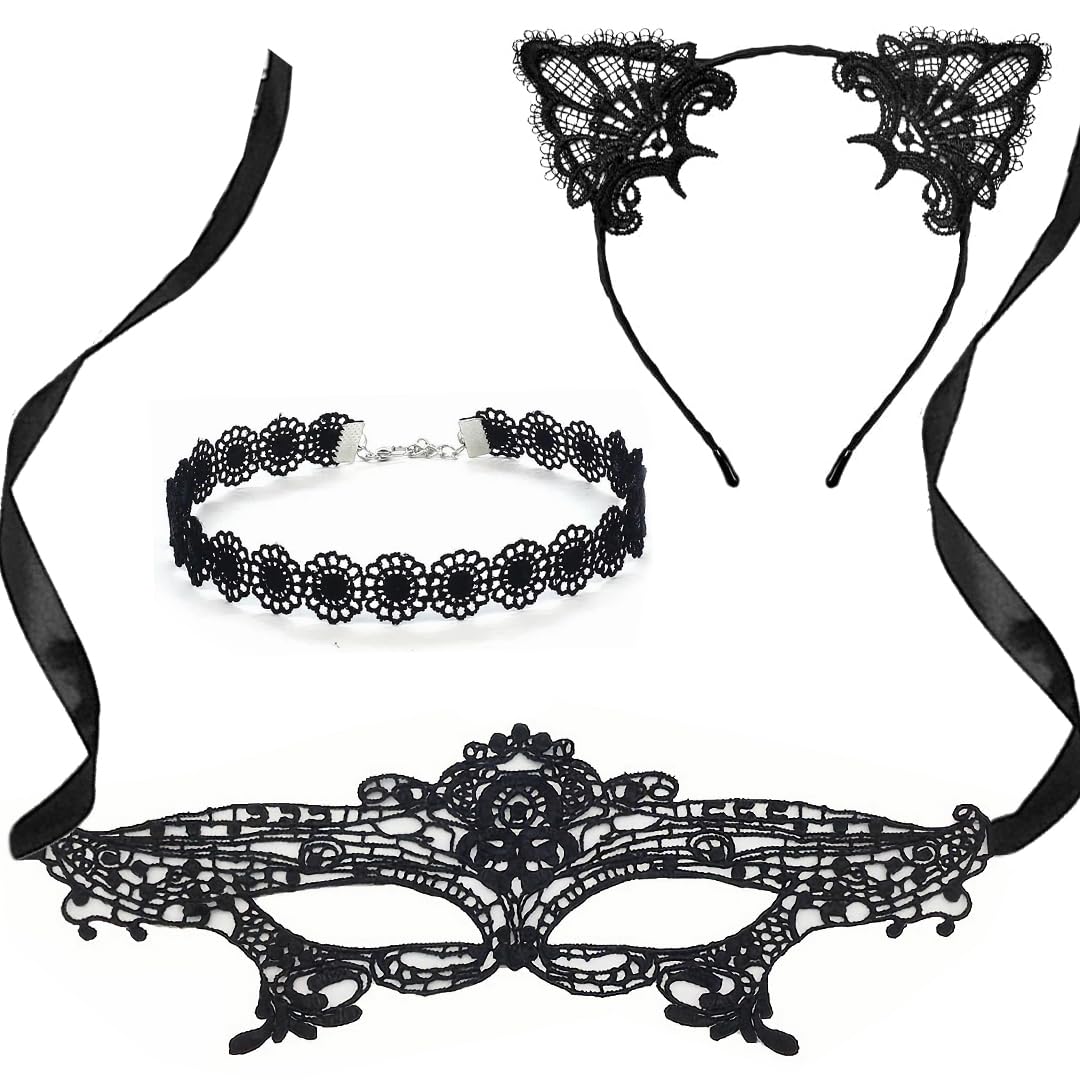KBIBCK Katzenkostüm Damen, 5 Stück Katzenohren Haarreif Spitze