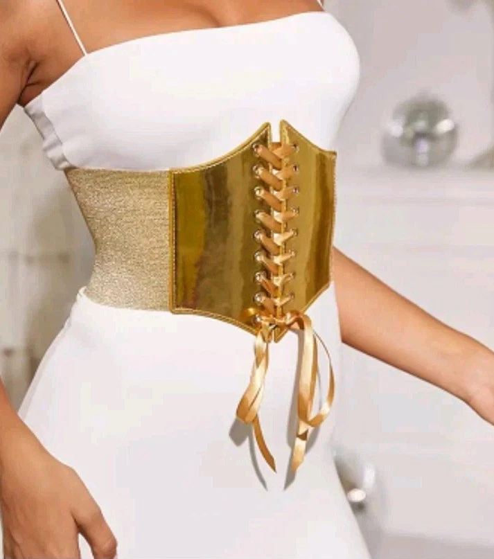 Allegra K Damen Glänzende Breite Taillengürtel Interlock-Schnallen