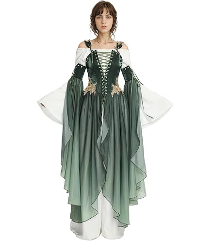 Renaissance Kleid Frauen Mittelalter Renaissance Feenkleid Langarm, München Bier Elfen COSDREAMER Renaissance-Kleider Für Damen, Mittelalterliches Kostüm, Irisches Langes Überkleid (Beige, XS Kostüm Damen Ausgestellte Ärmel, Bodenlänge, Schulterfrei, elastische Taille Material: Polyester, Hosenbund, lockerer Stil Mittelalterliches Kleid für Frauen, Vintage Maskerade Party Kleid, Renaissance Kostüm Frauen, Pirat Irish Cosplay Kostüm, Dienstmädchen Kostüm Kleid