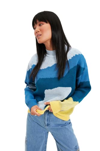 TRENDYOLMİLLA Damen Stehkragen Ajouré Slim Sweater Sweatshirt, Felsen, S