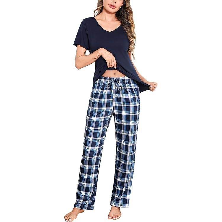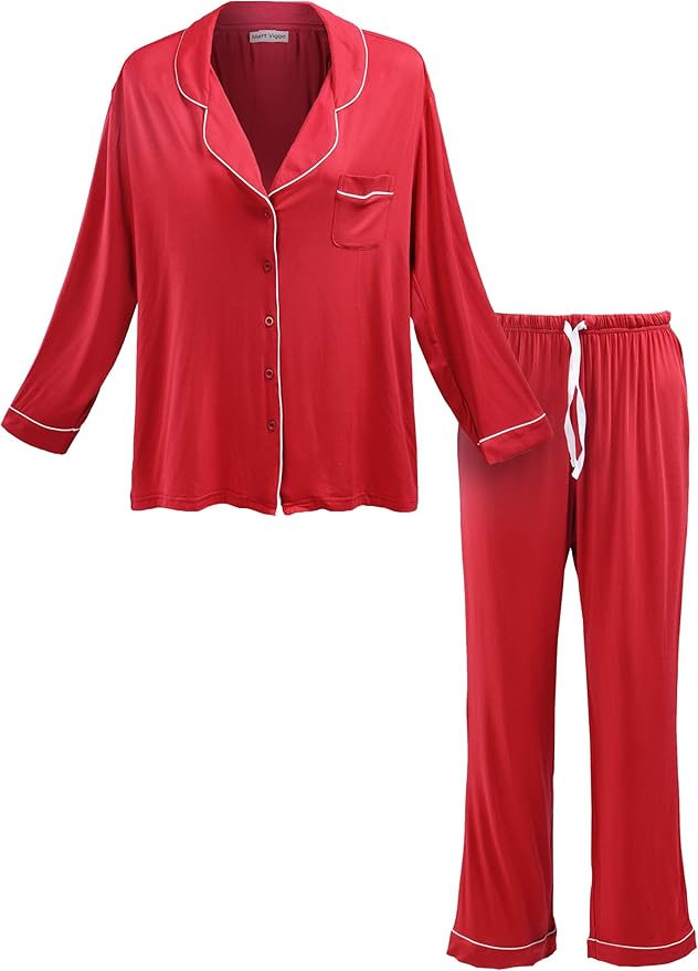 Matt Viggo Damen Zweiteiliger Schlafanzug Langarm Hausanzug Klassische