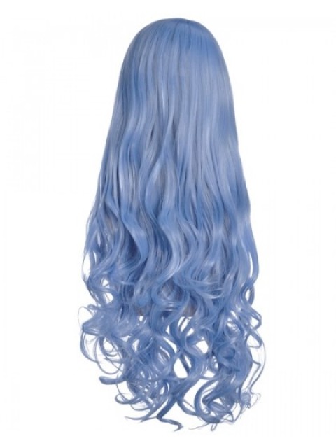 FAELBATY Kurze Bob Blue Perücken Mit Schulterlangen Air Bangs Damenperücke Curly Wavy Synthetic Cosplay Perücke Für Mädchen Halloween Kostüm Perücken (12"blaue Farbe