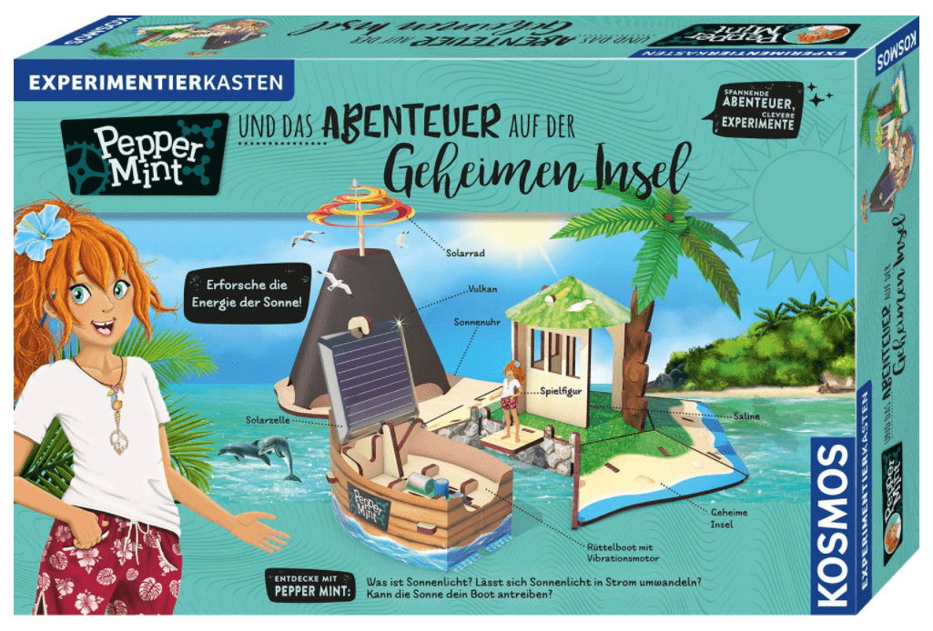 Pepper bindet die Kinder mit ein und gemeinsam probieren sie aus. Ob Magnet-Navi, Schwerelosigkeit oder Magnet-Aufzug: Kinder lernen Kapitel für Kapitel die Welt der Physik kennen. Bereits ab 16,99 € ✓ Große Shopvielfalt ✓ Testberichte & Meinungen ✓ | Jetzt Kosmos Mein erster Experimentierkasten - Technik günstig kaufen bei Mit Pepper den Magnetismus entdecken! Pepper durch die Geschichte folgen, komplexe Aufgaben lösen und dabei spielerisch Physik verstehen. Experimentierset für Kinder von 8 bis 11 Jahren – aufregend, lustig und lehrreich! Pädagogisch wertvolles MINT-Spielzeug – das ideale Geschenk für Mädchen und Jungen von 8 bis 11 Jahren Schritt für Schritt kommt sie dabei den Grundlagen des Magnetismus näher. Mit Flaschenzug, Katapult, LED-Lichterkette u., a. Natürlich spielen physikalische Phänomene dabei immer eine entscheidende Rolle! Experiment für Experiment erarbeitet sie sich neue Kenntnisse zum Thema Magnetismus und nimmt auch kleine Forscherinnen und Forscher mit auf ihre Entdeckungsreise. KOSMOS 606077 - Pepper Mint und das Mars-Abenteuer, Erforsche Magnete und ihre unsichtbaren Kräfte auf Peppers Weltraum-Mission zum Mars, Experimentierkasten für Kinder ab 8 bis 11 Jahre: Tests, Infos & Preisvergleich Experimente mit hochwertigem Material wie Magnetkugel, magnetischer Schleim, Petrischale u., v., m. Anleitung und Abenteuergeschichte Dieser Experimentierkasten beschäftigt sich in einer ganz neuen Form mit Naturwissenschaften. Pepper Mint Kosmos KOSMOS 606084 Pepper Mint Und Das Abenteuer Auf Rakete aus Holz als Experimentier- und Spielstation von KOSMOS – ideal zum weiteren Spielen! So werden mit Pepper Mint komplexe Phänomene zum coolen Abenteuer! Im Handumdrehen wird dafür eine Rakete aus hochwertigen Holzplatten zusammengebaut. Pepper Mint – spielerisch Naturwissenschaften erleben MINT steht für: Mathematik Informatik Naturwissenschaften Technik Mit Pepper wird Physik zum Abenteuer! Schritt-für-Schritt alle Experimente rund um Magnetfeld-Linien, Kompass und CO Von einem Moment auf den anderen steckt Pepper Mint mitten in einer spannenden Mission zum Mars! Sie lesen ein Kapitel und führen danach die detailliert erklärten Experimente selbst durch. Denn in jedem Kapitel tauchen neue Herausforderungen auf und Pepper Mint muss versuchen, mit cleveren Ideen eine passende Lösung zu finden. Die Pepper Mint Experimentierkasten-Reihe: spannende Abenteuer mit cleveren Experimenten Weitere spannende Abenteuer-Experimente mit Pepper Mint KOSMOS 606084 Pepper Mint und das Abenteuer auf der Geheimen Insel: Erforsche mit Pepper die Energie der Sonne in Experimenten zur Solar-Energie. Die Anleitung ist als Geschichte aufgebaut und vermittelt Wissen über Physik im Grunde wie nebenbei. (EAN 4002051606084) KOSMOS 626020 Pepper Mint und das Baumhaus-Abenteuer: Entdecke mit Pepper die physikalische Grundsätze im Dschungel-Baumhaus. Magnetismus wird hier zum Abenteuer: Die illustrierte Abenteuergeschichte erzählt von Pepper Mints Weltraum-Mission zum Mars und erklärt Eine Holzrakete wird zur Experimentier- und Spielstation, die mit jedem Versuch um ein Element erweitert wird. Immer abwechselnd wird gelesen und im Anschluss Versuche durchgeführt. KOSMOS Pepper Mint und das Abenteuer auf der Geheimen Insel