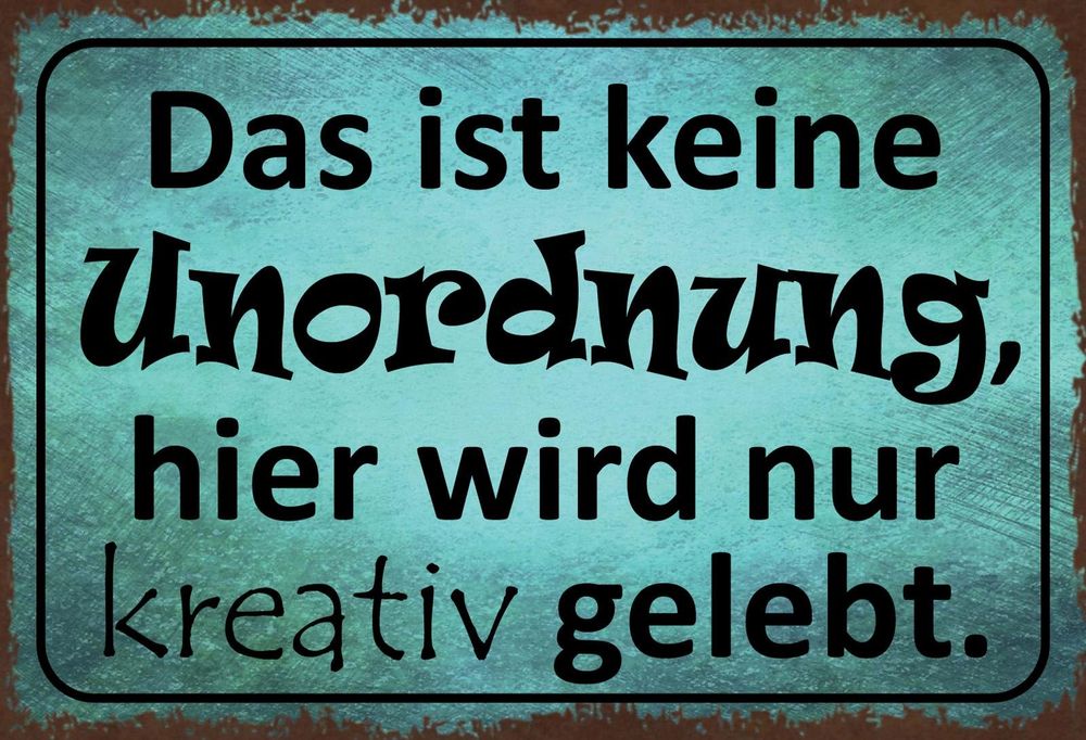 Metallschild mit dem Spruch "Das ist keine Unordnung hier liegen nur überall Ideen herum". Das Blechschild hat eine Größe von größer als 15 x 30 cm und passt mit seinem modernen Design (ab 1960) perfekt in jeden Raum Ein passender Spruch für alle, bei denen auch ab und zu das Chaos herrscht. Material: Aluminium, Produktmaße: ca. 15cm x 20cm Ausrichtung: vertikal Hochwertiger Druck, glänzende Farben Lieferumfang: 1x Metallschild mit Spruch: Hier herrscht keine Unordnung, ., ., ., Ein passender Spruch für alle, bei denen auch ab und zu das Chaos herrscht. 1pc, Funny German Language Wir Wollen Hier Nichts Kaufen, Metal Sign Tin Signs W Weitere rechtliche Informationen:Es handelt sich bei diesem Artikel um ein Produkt mit dem Spruch: Hier herrscht keine Unordnung, hier liegen nur überall Ideen herum. Material: Aluminium, Produktmaße: ca., 15cm x 20cm , Ausrichtung: vertikal Diese und alle weiteren auf dem Produkt abgebildeten Begrifflichkeiten, Texte, Wörter, Grafiken oder Motive sind ausschließlich beschreibend verwendet und stehen in keiner Verbindung zu etwaigen gleich- oder ähnlich lautenden, fremden Markenbezeichnungen. Hier Draußen Martina Behm Das Ist Keine Unordnung. Hier Wird Nur Kreativ Gelebt Wir Sind Nicht Hier Um Spaß Zu Haben Mit Sorgfalt in Handarbeit hergestellt, strahlt dieses Schild durch sein modernes Design und seine hochwertige Verarbeitung eine angenehme Wohnatmosphäre aus. Mit diesem Metallschild holst Du Dir sommerliche Stimmung ins Zimmer und ein Gefühl von Freiheit! - Weitere Informationen und rechtliche Hinweise siehe Produktbeschreibung.