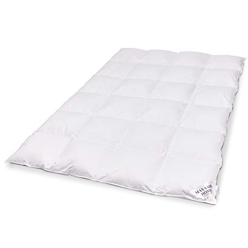 Ballonbett - der Klassiker für alle, die es gern bauschig und warm mögen, wie aus Omas Zeiten.Anders als bei den Kassettendecken lässt sich der Inhalt dieser Oberbettes nach Wunsch verteilen.Geeignet für alle, die es gern volumig mögen und sich so richtig einkuscheln möchten Ballonbett - der Klassiker für alle, die es gern bauschig und warm mögen, wie aus Omas Zeiten. Ballonbett in 155x220 cm mit 3200 Gramm Füllung aus weißen neuen Gänsefedern und -daunen (85% Federn und 15% Daunen) Klasse 1 nach DIN EN 12934, Federbett, Oberbett, Winterbett, Winterdecke, warm Tragetasche -Designed in Germany - Made in Europe -Daunendecke - Rein natürliches Produkt -Maße: 155x220 cm -Füllung: 50% Gänsedaunen - 50 % Gänsefedern -Füllgewicht : 2800 Gramm -Bezug : 100 % Baumwolle -Kann bis max. Füllung: 50 % Federn - 50 % Daunen , Ca., 2800 Gramm Füllung XXL - EXTRA WARM Winterbett Bettdecke Schäfer BALLON - FEDERBETT mit 85 Anders als bei den Kassettendecken lässt sich der Inhalt dieser Oberbettes nach Wunsch verteilen. Winterdecke 155x220 Oberbett (Ballonbett) - Basic - Daunen-Betten-Manufaktur Zudecken Bettdecke 155x220 Winter Tragetasche -Designed in Germany - Made in Europe, Ballonbett 155x220cm lt;pDie <strongFederdecke</strong wie in alten Zeiten in der Standartgröße 135x200 cm. Sie eignen sich hervorragend zum Schutz vor Kälte, da sich zwischen den feinen Härchen Hohlräume bilden und die Luft gut einschliessen.