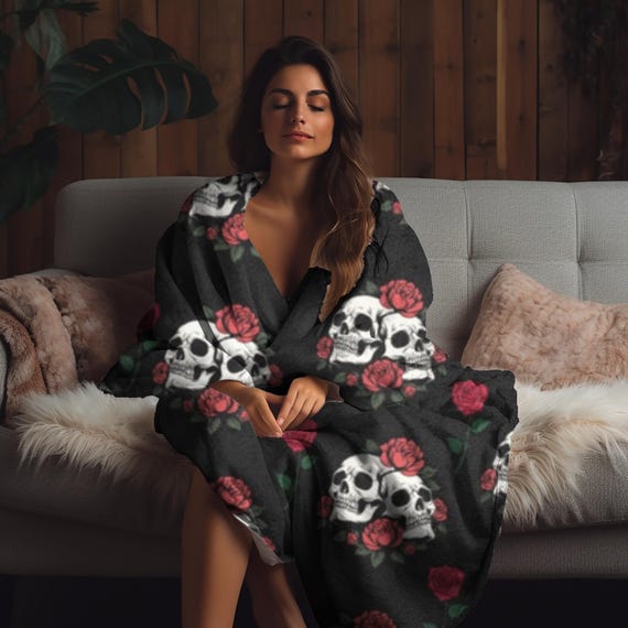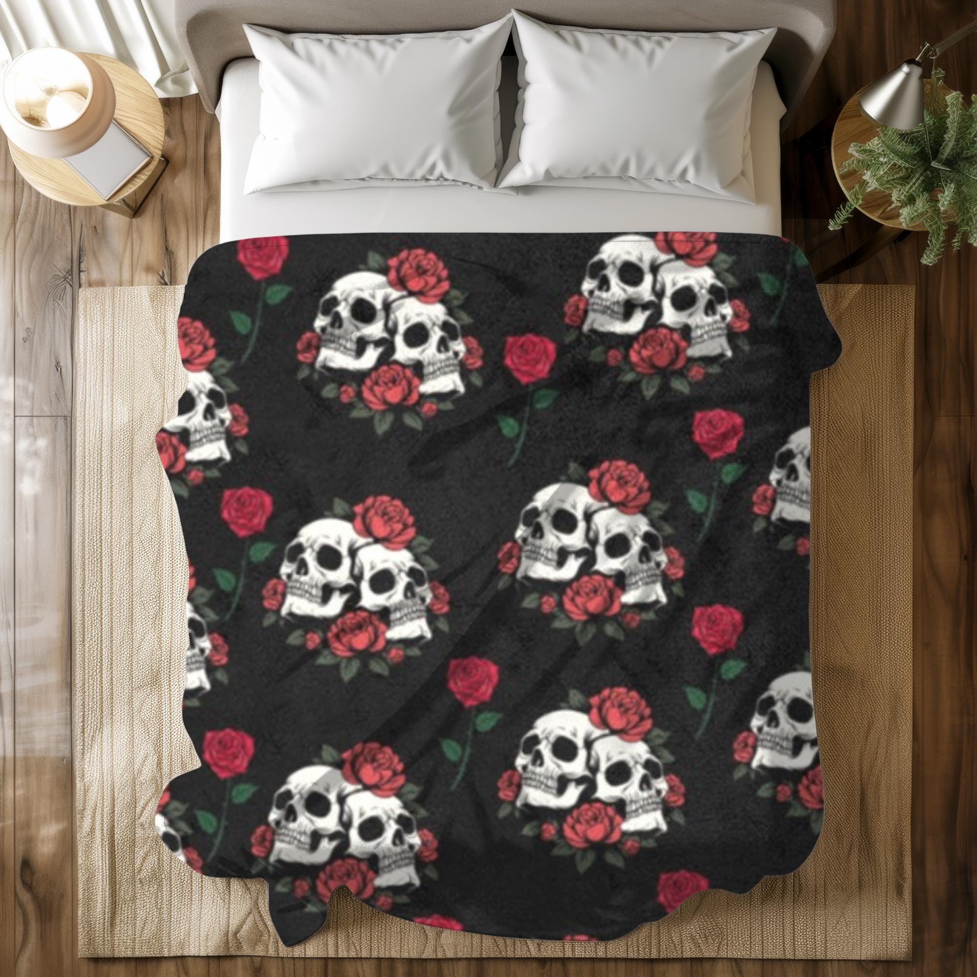 Rose Skelett Totenkopf Decke,weiche Und Warme Decke, Sofadecke,Flanell-Überwurfdecken Für Wohnzimmer,Bettwäsche,Sofa,Schlafzimmer,Kinder,Erwachsene, 50x60inch(127x152cm