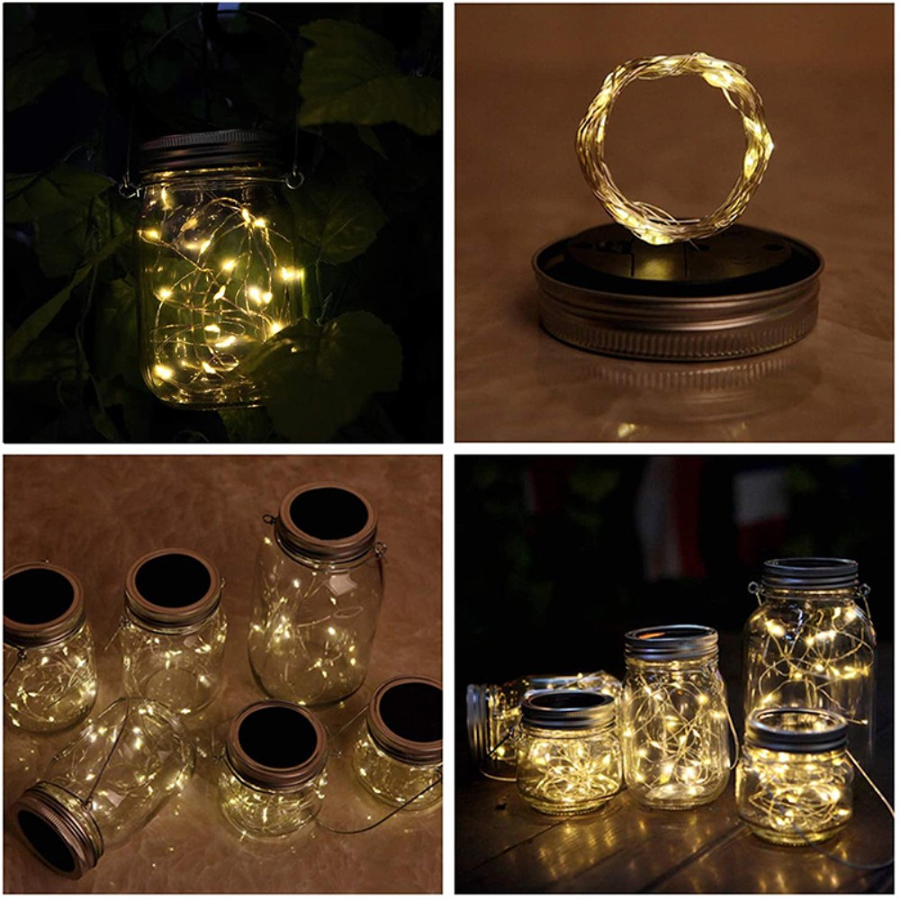 2 x Mason Jar Lights Deckel Anzahl der Lampenperlen: 20LEDs, Lichtquelle: Warmes Licht LICHTSENSOR: Der Deckel der Einmachglas-Solarleuchten lässt sich durch Drücken der Taste einschalten und direktem Sonnenlicht aussetzen. Akku: 1 x AAA Akku 600mAh (im Lieferumfang enthalten), Bruttogewicht: ca., 90g/3,2oz, Paketliste Machen Sie Ihre weggeworfenen Einmachgläser zu wunderschönen Lichtern, um Ihre Umgebung zu dekorieren ANWENDUNGEN: Diese Solar-Einmachglas-Leuchten können an Bäumen aufgehängt oder auf sonnigen Fensterbänken, Zäunen, Pflanzenständern im Freien, Rasenflächen, Tischbalkonen, Hinterhöfen, Terrassen, Veranden und mehr platziert werden Gläser sind nicht im Lieferumfang enthalten. 6 x Einmachglas Deckel Lichterketten. Geld sparen, für lange lebensdauer verwendet; Lampe verfügt über einen Ein / Aus-Schalter unter dem Deckel 2 Stück Einmachglas Solar Lichter Deckel, 20 LEDs, Feen Lichterkette, Einmachglas Lichter, Solar Glühwürmchen Lichter, Deckel für normale Gläser 6,6 Fuß von Beufee. Gläser günstig online kaufen bei Möbel & Garten WASSERDICHTES DESIGN: Durch das wasserdichte Design funktioniert die Solar-Glasleuchte sowohl im Innen- als auch im Außenbereich gut, ohne dass Sie sich Gedanken über wetterbedingte Kurzschlüsse machen müssen, wodurch Ihre eigene romantische Atmosphäre entsteht 2 Stück Einmachglas-Solar-Lichter-Deckel, 20 LEDs, Feen-Lichterkette, Einmachglas-Lichter, Solar-Glühwürmchen-Lichter, Deckel für normale Gläser 6,6 Fuß von Beufee. Solarlapen für Außen Garten, 2 Stück 10 LED Glühwürchen Solarleuchten 4Pack Solar Glühwürchen Lichter,10 LED Firefly Solar Gartenlichter...