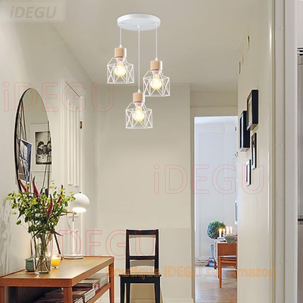 Retro Pendelleuchte im Industriestil, der Käfig-Lampenschirm mit eleganter Beschichtung verleiht Ihrem Zuhause eine Vintage-Note. Farboptionen: Roségold, Schwarz, Weiß. iDEGU Hängeleuchte, industriell, Vintage, E27, Retro, Deckenleuchte, Deckenlampe LED, Eisen, Käfig-Design, 20 cm, für Wohnzimmer, Küche, Bar Kabellänge: 100 cm (verstellbar). Durchmesser der runden Decke: Ø 10 x 2 cm., Sockeltyp: E27., Leistung: 60 W (Leuchtmittel nicht im Lieferumfang enthalten)., Spannung: 110-240 V. ★ Die Pendelleuchte ist aus hochwertigem Metall, langlebig und rostbeständig. Die iDEGU Pendelleuchte mit einer Vintage-Trommelkäfigform und einer modernen Roségold-Beschichtung eignet sich für Retro- und moderne Dekoration. Größenoptionen: 1 Licht, 3-in-1-Hängeleuchte mit 50 cm langer Stange, 3-in-1-Aufhängung mit 30 cm Sockel. OULENBYAR Deckenleuchte Modern Krstall Kronleuchter bündge... Pendelleuchte, Stahl weiß, Käfig, 33 cm | ETC Shop Material: Der Kronleuchter ist aus hochwertigem Eisen mit glatter Oberfläche und klassischer Roségold-Beschichtung, ein elegantes Aussehen., Lampenfassung: E27., Die Pendelleuchte mit E27-Fassung ist für alle E27-Glühbirnen geeignet, wie LED, Glühlampen, Halogen. IDEGU Deckenleuchte Vintage Deckenlampe Aus Holz Und Eisen Käfig Design 20cm Lampenschirm E27 Beleuchtung Pendelleuchte Industrial Lampe Für Flur Schlafzimmer Wohnzimmer Küche Eingang (Gold ★ Kabel verstellbar von 100 cm: verstellbar von 0 bis 100 cm, kann als Deckenleuchte verwendet werden., Typ: Industrielle Kronleuchter. iDEGU Hängeleuchte, industriell, Vintage, E27, Retro, Deckenleuchte, Deckenlampe LED, Eisen, Käfig-Design, Ø 20 cm, für Wohnzimmer, Küche, Bar ★ Mit der eleganten und schönen Form ist diese Pendelleuchte nicht nur eine Beleuchtung, sondern auch eine schöne Dekoration.