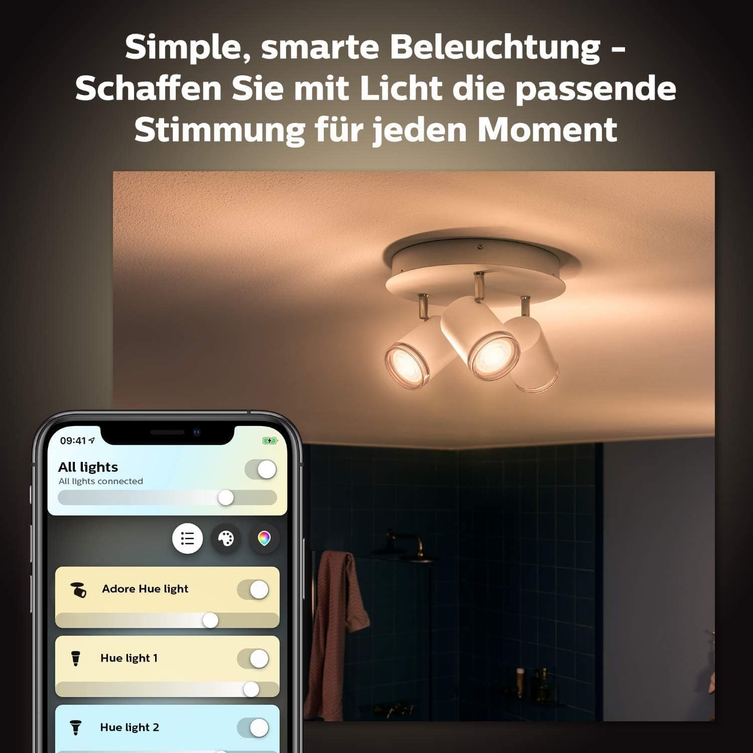ZigBee-SteuerungDiese Leuchte lässt sich nahtlos in das Smart Home-System von Philips Hue integrieren, wofür eine passende Bridge (siehe Zubehör) erforderlich ist. Philips Hue White Amb. LED-Deckenleuchte Cher inkl. Dimmschalter, schwarz, dimmbar, alle Weißschattierungen, steuerbar via App, kompatibel mit Alexa (Echo, Echo Dot), 1 Stück (1er Pack) - HomeKit Kompatibel | DE Aufgrund des eingebauten LED-Leuchtmittels können Sie Ihre Lichtfarbe selbst bestimmen. Mit Philips Hue können Sie das Licht bequem vom Sofa aus oder von unterwegs steuern. Dazu kann das Licht mit dem Schalter gedimmt und geschaltet werden. Durch Nutzung der Bridge ist eine Steuerung von Zuhause oder unterwegs und viele Lichtsteuerungen bei bis zu maximal 50 Leuchtmitteln im ganzen Wohnraum möglich. Philips Hue verfügt über eine Vielzahl von konfigurierbaren Zubehörartikeln. Einfach die passende und kostenlose Hue-Bluetooth-App herunterladen, die Leuchte anschließen und los geht's. Die Leuchte bietet zu jeder Tageszeit warmweiße bis tageslichtähnliche Farbtöne, so dass Sie zu jeder Tageszeit die richtige Beleuchtung erhalten. Die Philips Hue LED-Deckenleuchte White Ambiance Cher besticht durch natürliches weißes Licht, das Ihnen beim Energie tanken, Konzentrieren, Lesen und Entspannen hilft und Ihr Zuhause mit individuellem Licht gestaltet Bedienungsanleitung Philips Hue White Ambiance Cher LED... Hier erfolgt die Steuerung ebenfalls über das eigene Smartphone oder Tablet, ohne dass hier eine Bridge oder eine Verbindung zu einem Smart Home System gegeben ist. Einfache Einrichtung per Bluetooth: Hue Deckenleuchte mit integriertem Leuchtmittel anbringen, App downloaden und direkt smart steuern per App, Sprache oder Schalter Personalisierte Beleuchtung: Wählen Sie aus den verschiedensten Weißtönen, vom kühlen bis warmen Licht, um so einem Raum das gewünschte Ambiente zu verleihen. LED-Deckenleuchte mit Lautsprecher: Eine innovative Kombination Flexible Lichtsteuerung: Für stufenloses und komfortables Dimmen, nutzen Sie den mitgelieferten Dimmschalter als Lichtschalter oder auch als abnehmbare Fernbedienung Auch die Lichthelligkeit können Sie via App-Steuerung regulieren. LeuchtmittelHöhe /Durchmesser / Gewicht84mm, 425mm, 3,19kgSmart HomeSystemSmart Home Philips HueKompatibilitätIKEA TRADFRI, Innr, SHYNE, SLV ValetoSprachsteuerungGoogle Assistant, Alexa, Apple HomeKitDatenübertragungBluetooth, WLANProtokollZigBeeEinbindungenüber Hue App, in das Hue System mittels BridgeLebensdauerAnzahl der Schaltzyklen50.000Nennlebensdauer25.000 StdSchutzartIP 20MaterialienQuecksilberfreiJaMaterial/ FarbeMetall, Kunststoff, SchwarzFachgerecht zu entsorgen nach WEEEJa* A (höchste Effizienz), G (geringste Effizienz)