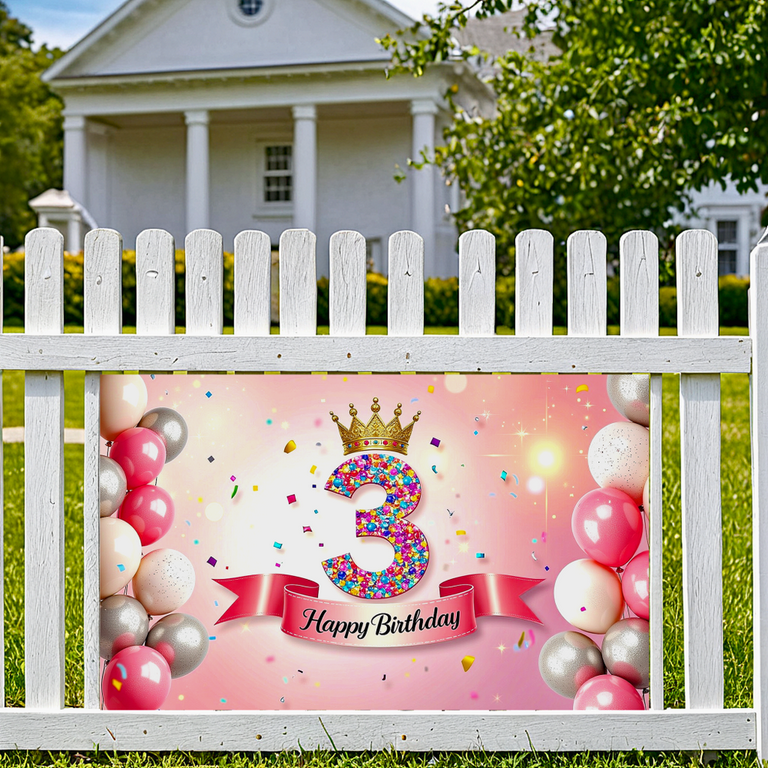 3rd Birthday Girl Decoration, Happy 3 Birthday Rose Gold Door Banner Fabric Sign Poster Door Decoration, 3rd Birthday Background Banner Birthday Party Decoration