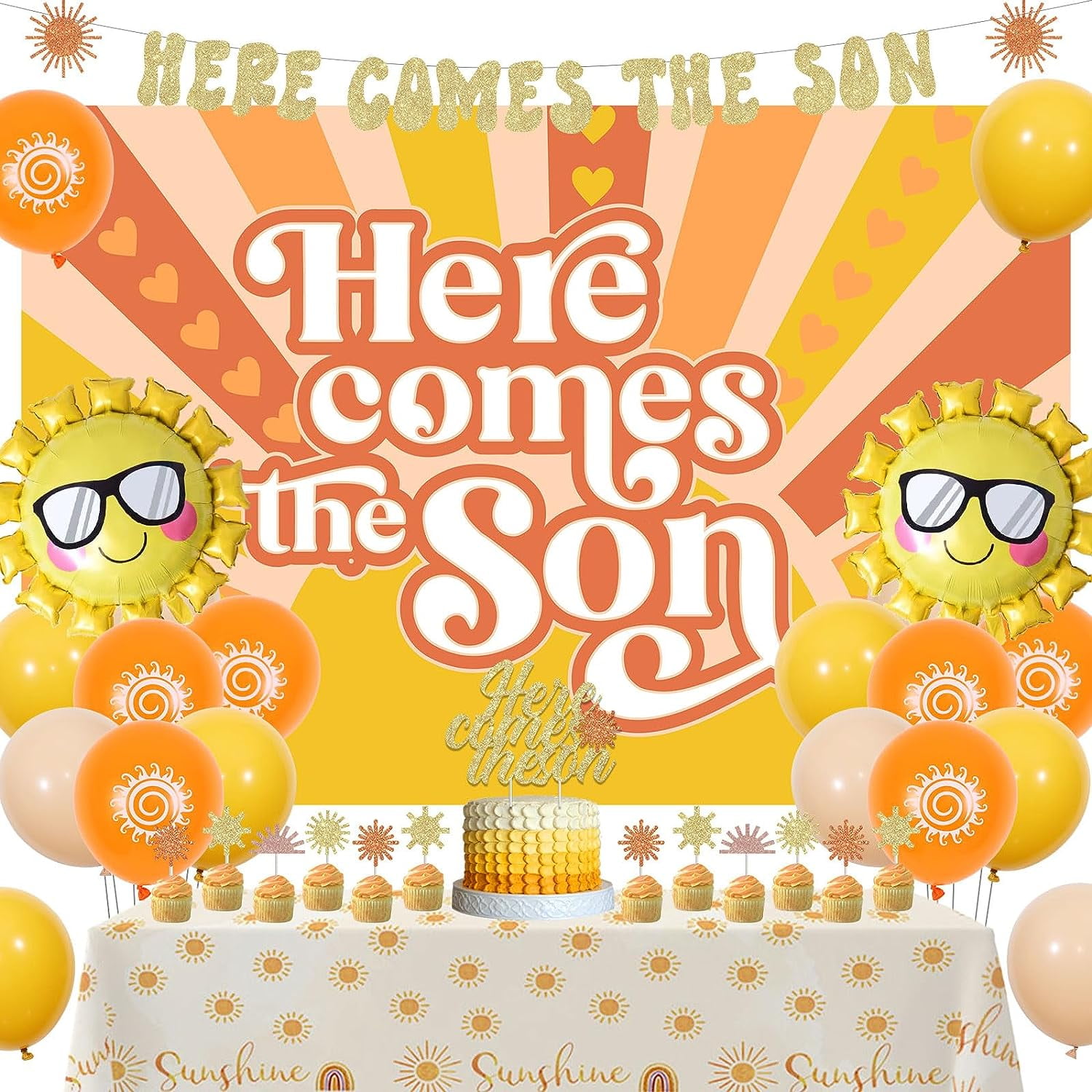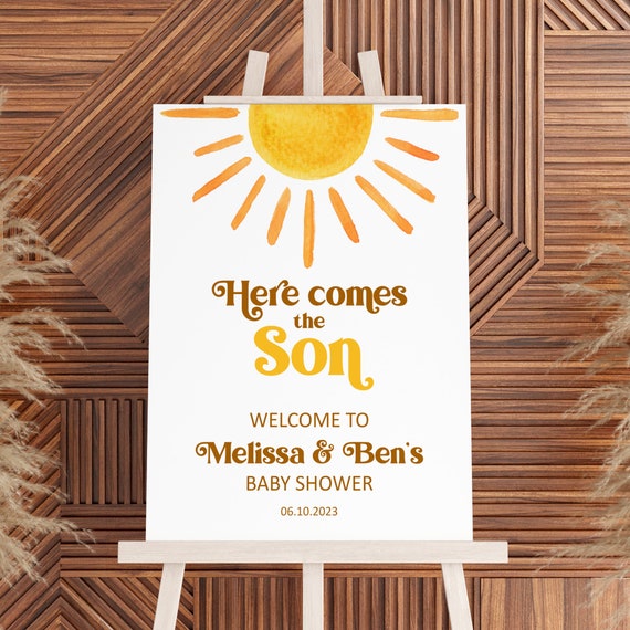 Sun Baby Shower Decorations, Here Comes The Son Banner Boho
