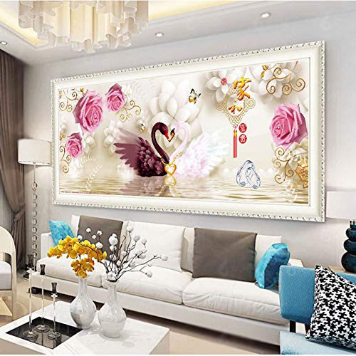 Deike Mild 5D Diamant Painting Full Bohrer DIY Diamond Malerei Schwan Kristall Strass Wandkunst Handgemachtes Wohnzimmer Schlafzimmer Wanddekoration (180x70cm