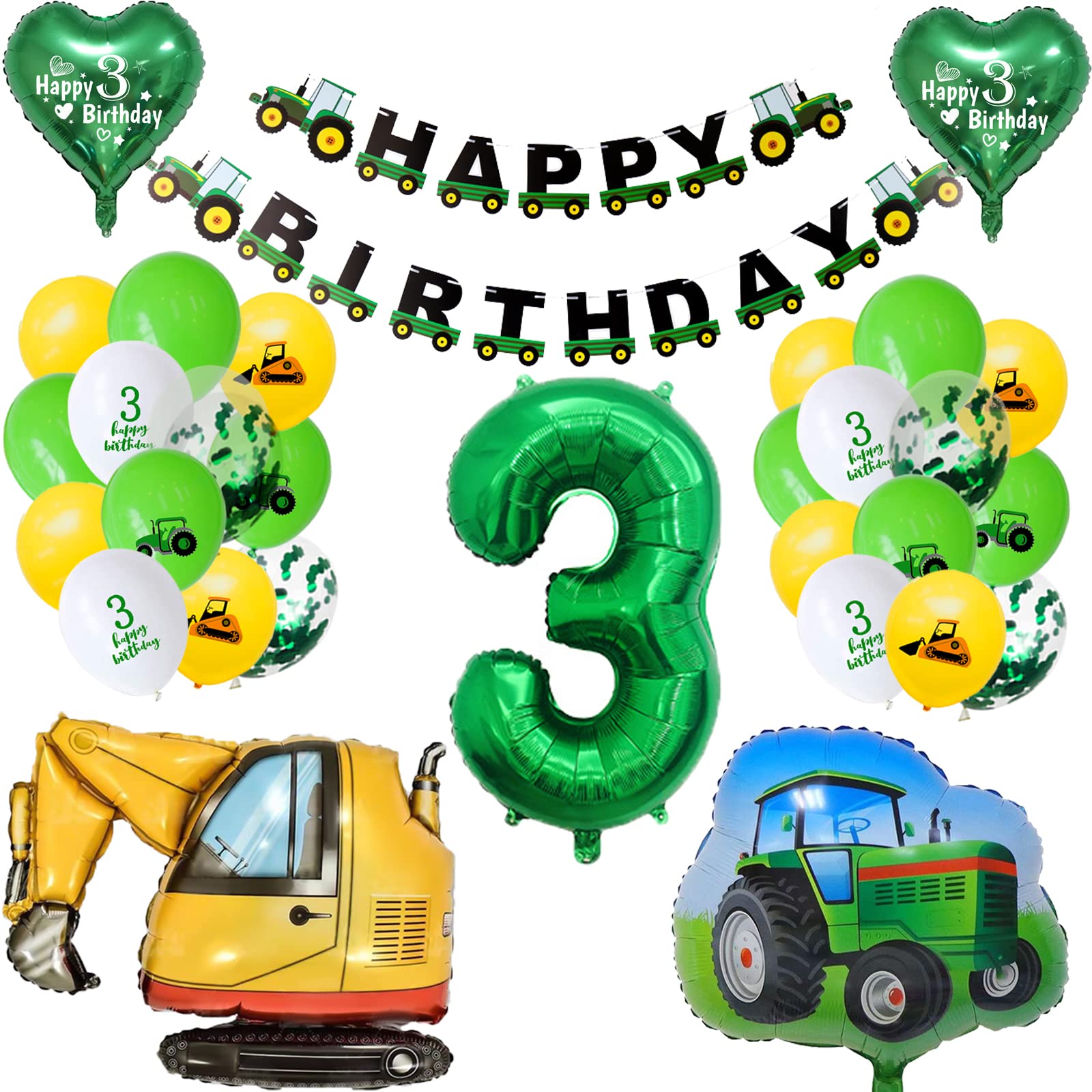 VUCDXOP Traktor Geburtstag Deko Set 3 Jahre, Deko 3 Geburtstag Junge Trecker Party Dekoration, 3