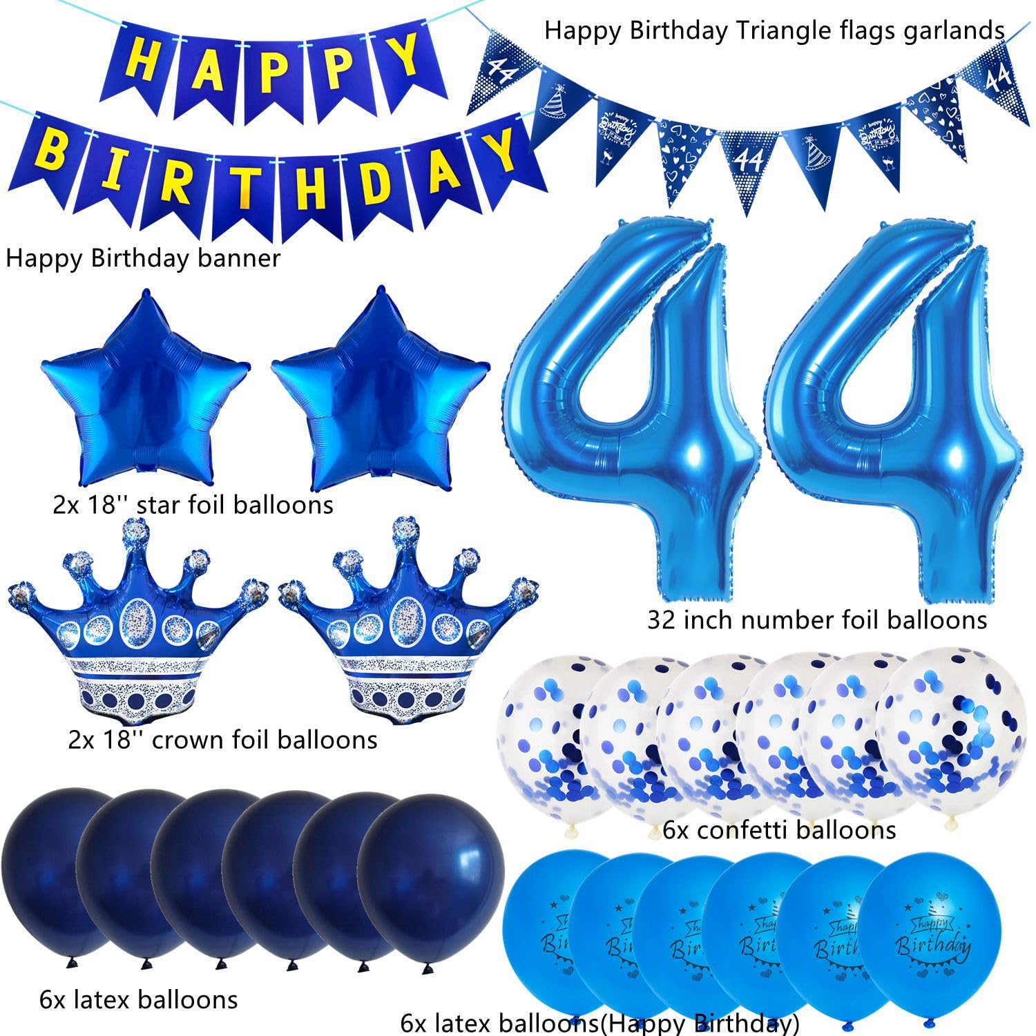 Luftballons 44 Geburtstag Dekoration Blau 44 Jahre Mann Geburtstagsdeko Ballon,Blau Happy Birthday Girlande Banner Folienballon 44 Geburtstag Party Deko Für Männer,deko 44. Mann Geburtstag Deko