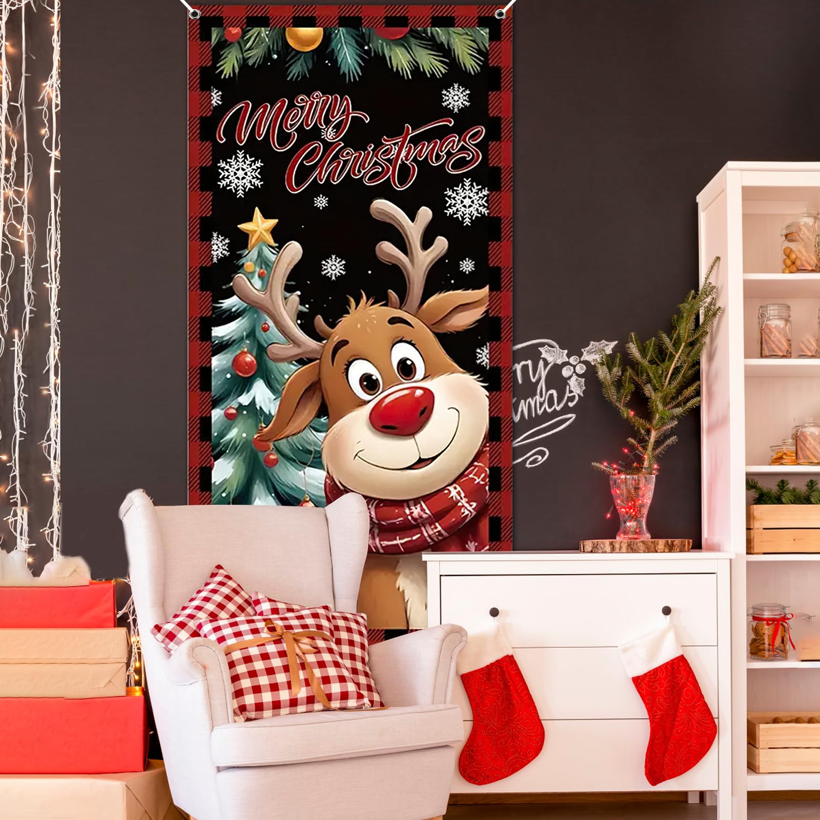 Hintergrund des Weihnachtsthema: Das Banner an der Weihnachtstür ist mit einem Weihnachts-Süßigkeiten-Schnitthaus, einem Winterschneebaum, einem Weihnachtsbaum, einem Weihnachtszug, Worten [Frohe Weihnachten], sowie vielen Geschenken bedruckt, die sich für die Dekoration von Weihnachtsfamilienfeiern eignen; Dies wird Ihr Weihnachten... Die entzückenden Muster auf der Weihnachtstür -Cover können die Teilnehmer der Weihnachtsfeier beeindrucken. Der schöne Hund und die Katzen, die Weihnachtsmützen tragen, schauen hinter den Weihnachtsbaum, der schön und zart aussieht. Breite Anwendung: Unsere Weihnachtstürabdeckung ist universell, weil sie an den Türen, Veranden, Wänden und Fenstern gehängt wird und eine warme und lebhafte Weihnachtsatmosphäre erzeugt. Produkt enthalten: Sie erhalten 1 Stück Weihnachts -Türabdeckung und messen etwa 185x90 ??cm und für die meisten Türen eine geeignete Größe. Gehen Sie zunächst das Band durch die Löcher in den vier Ecken der Türabdeckung der Ferien. Zuverlässiges Material: Die Frohe -Weihnachts -Türabdeckung aus Polyester mit erstklassigem Polyester ist nicht einfach zu falten oder zu schrumpfen, glatt zu berühren, waschbar und faltbar, zuverlässig und robust. Frohe Weihnachten Türdekoration Outdoor Aufkleber Tapisserie Frohe Christmas Door Decoration Weihnachten Tür Banner Dekoration Santa Claus Tür Abdeckung Frohe Weihnachtsdeko Für Tür Weihnachten Tür Abdeckung, 185x90cm Frohe Weihnachten Banner Weihnachten Tür Banner Frohe Weihnachten Banner Dekoration für die Türdekoration (Haustier-Peeping-Stil Es ist leicht zu hängen und braucht nicht viel Zeit.