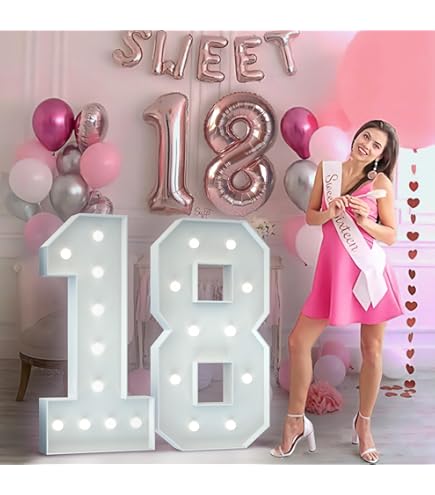 Festzelt-Zahlenlichter, glitzernde, rosa leuchtende Zahlen für Produktbeschreibung Batteriebetriebene Festzeltnummern Festzelt-Nummernschild mit warmweißen LED-Lichtern, angetrieben durch 2 AA-Batterien (nicht im Lieferumfang enthalten). Sein tragbares Design ermöglicht es Ihnen, es einfach zu jeder Party zu tragen für Geburtstagsfeiern oder romantische Jubiläumsdekorationen. Diese beleuchteten Marquee-Zahlen sehen auch ohne eingeschaltete Beleuchtung toll aus und sind ein wunderbares Geschenk für Mädchen, Mütter und Freunde. Batteriebetrieben (2*AA nicht im Lieferumfang enthalten) Zwei Möglichkeiten zur Anbringung: Dank der Aufhängelochung auf der Rückseite kann das Zahlenschild an Wänden aufgehängt werden. Glitzernde LED Zahlen Lampe Nummer Beleuchtete Ziffern für 18.Geburtstagsparty Jubiläum Hochzeit Hintergrund, Zahlen Lichter Batteriebetrieben Ein auffälliges, schönes Accessoire für Ihre Party- und Wohnraumdekoration, z. B. für Geburtstagsfeiern oder romantische Jubiläumsdekorationen Bringen Sie Ihre Geburtstagsfeier zum Leuchten Die funkelnden LED-Zahlenleuchten machen Ihre Feier unvergesslich. Ballon Rahmen Zahl Dekorative LED-Zahlen, 22,4 Cm, Glitzernde Ballonrahmen Zahl