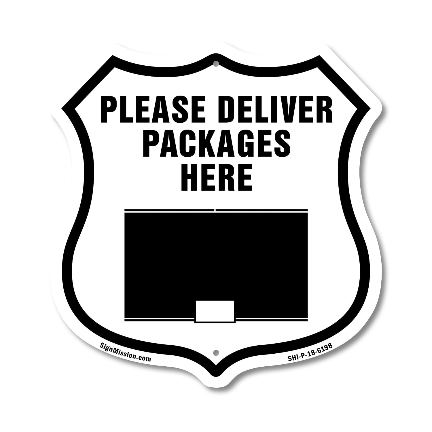 Please Deliver All Packages Here BLACK Aluminum Composite Sign