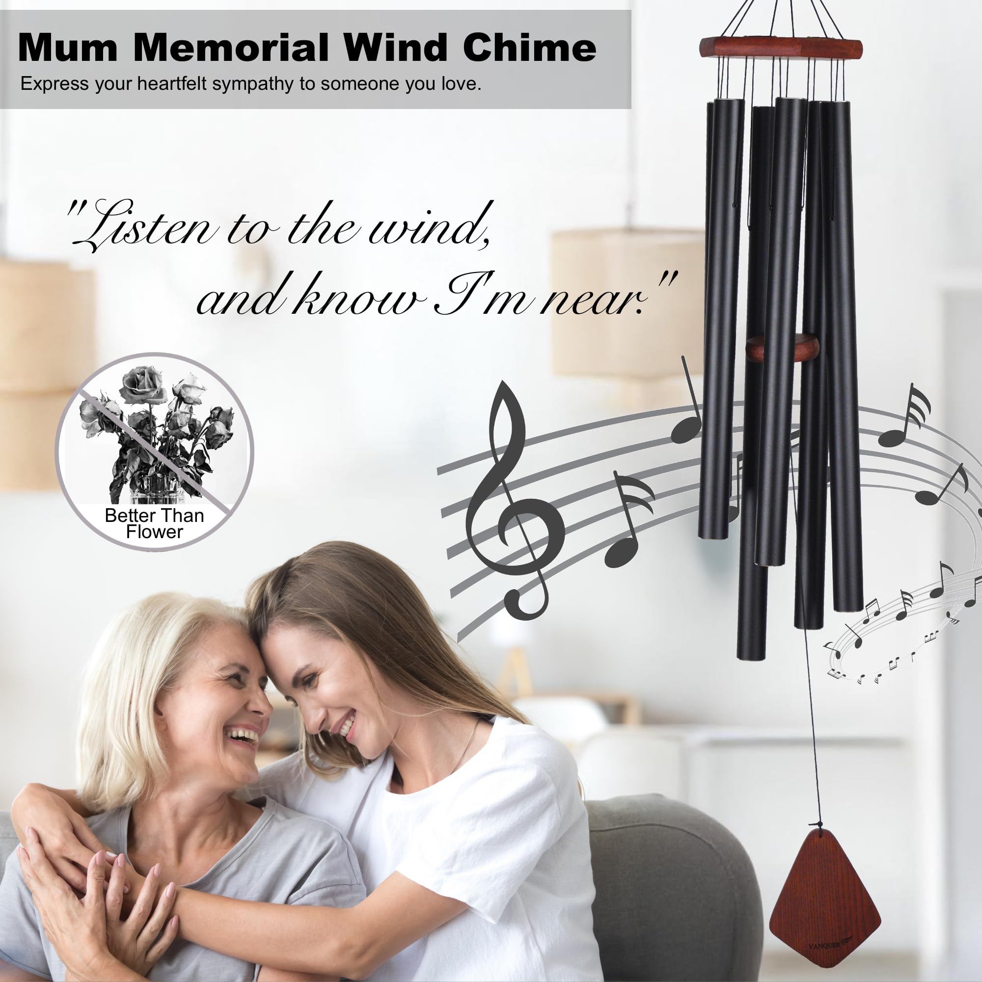 Vanquer Großes Windspiel Für Den Außenbereich, Tiefer Ton, 117,8 Cm, Windspiel, Gedenk-Windspiel, Beileidsgeschenk, Outdoor-Dekoration, Terrasse, Heimdekoration, Vintage-Schwarz (116,8 Cm Baum Des