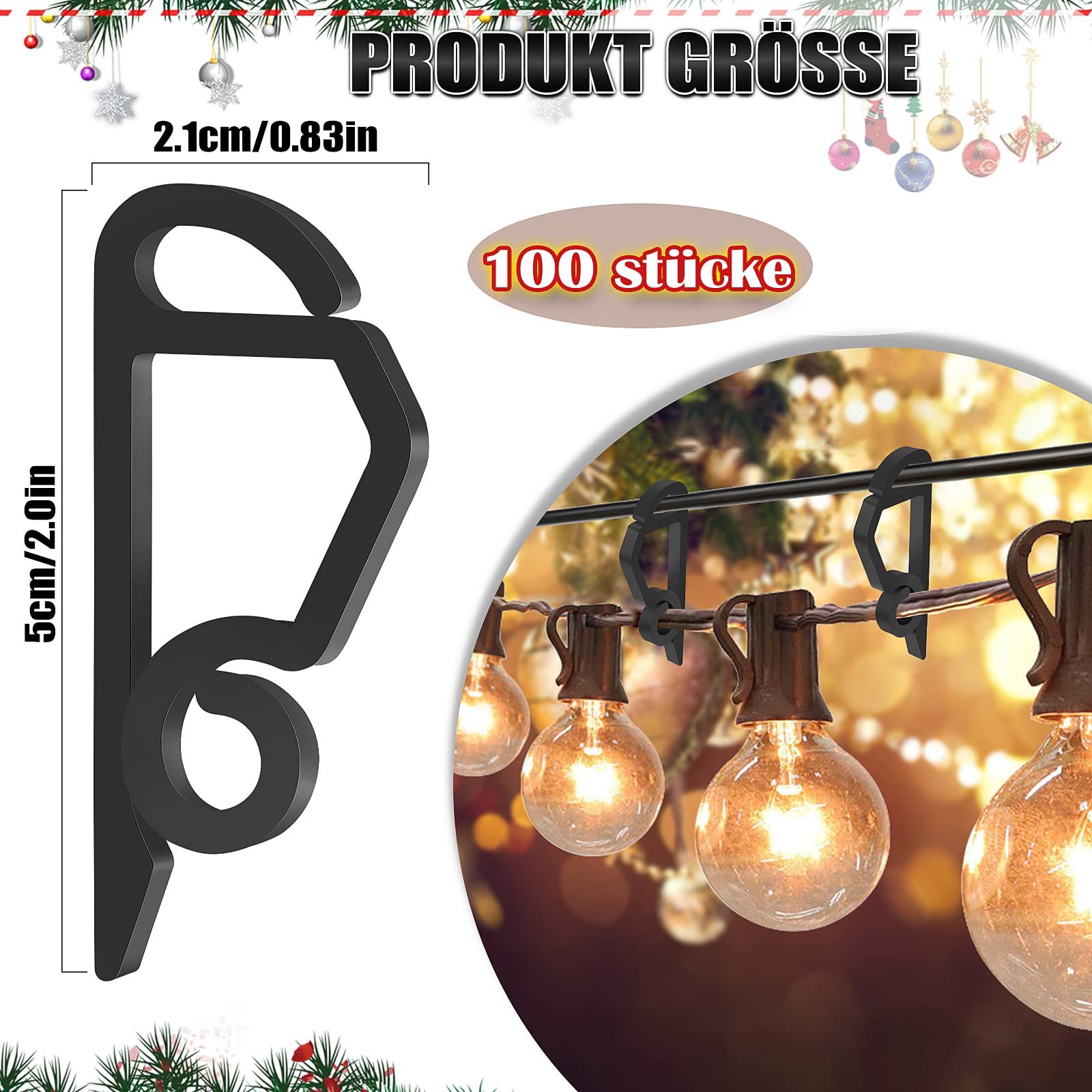 Klemmen Sie die Dachrinnenkanten an oder schieben Sie den Clip unter Schindeln und die Lichterkette durch die Schlaufe, es sieht toll aus, wenn Sie fertig sind. Clips halten Kabel auch bei Windböen effektiv bis zu 50–60 km/h fest In den USA hergestellte, langlebige Kunststoff-Lichtklammern – Verwendung mit allen Arten von Lichterketten einschließlich C5, C6, C7, C9, Mini, Eiszapfen Schnell und einfach anzubringen: Weihnachtslicht-Clips halten Lichter sicher an Ort und Stelle. Schaffen Sie eine warme und märchenhafte Atmosphäre für Ihre Familie. Funktioniert perfekt: Diese Urlaubslicht-Clips sind einfach, die Lichterketten an Regenrinnen, Dachrinnen, Dachrinnendrinnen oder an der Seite von Schindeln aufzuhängen. ToolValtz 100 Stück Weihnachtslicht-Clips, Weihnachtslicht-Clips, Dachrinnenhaken für Weihnachten, Urlaub, Dekoration, Lichterketten, wetterfest. Regenrinnen Halterung Lichterkette Solar-Lichterkette Für Den Außenbereich, Wasserdicht, 20 M, 200 LEDs, 8 Lichterkette Befestigung Outdoor 50/80 Stück Weihnachtslicht-clips, Dachrinnen-clips Für... Universell einsetzbar – Verbinden Sie sie mit dem Draht der Lichterkette, um sie an Ort und Stelle zu halten – für die Verwendung mit allen Arten von Lichterketten einschließlich LED, C5, C6, C7, C9, Mini, Eiszapfen, Lichter. Diese vielseitig einsetzbaren Lichterketten für den Außenbereich eignen sich für zahlreiche festliche Anlässe. Ihr elegantes Design passt zu jedem Dekorationsstil, während der starke Halt für einen sicheren Halt der Lichter sorgt Mittlerweile ist der Schnurhalterumfang der Weihnachtslicht-Aufhänger-Clips größer, um viele Arten von Lichtern perfekt zu passen. Dachrinnenhaken für Lichterketten - Die 15 besten Produkte im Vergleich