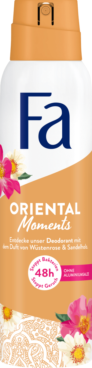 Zarter Duft von Wüstenrose und Sandelholz. Ein Duft wie aus 1001 Nacht. Das Deo wirkt effektiv gegen Körpergeruch und verzaubert die Sinne mit Wüstenrose und Sandelholz. 3 x 150ml = 450ml / 22,11 EUR je 1 L Schicke deine Sinne jeden Tag auf eine wunderbare Reise und genieße den zarten Duft von Wüstenrose & Sandelholz. Erlebe bis zu 48h Deo-Schutz ohne Aluminiumsalze, kämpft effektiv gegen geruchsauslösende Bakterien und sorgt für langanhaltenden Schutz Anschrift Hersteller/Importeur D-40191 Düsseldorf Fa Deodorants für Damen als Spray online kaufen Produktbeschreibungen 48h Deo-Schutz. 48h zuverlässiger Deoschutz Skin iPad Air/iPad Formel. Fa Douchegel Deospray Oriental Moments, Wüstenrose- Und Sandelholzduft Fa Oriental Moments Deodorant Spray Extrem entzündbares Aerosol. Behälter steht unter Druck. Hautverträglichkeit dermatologisch bestätigt