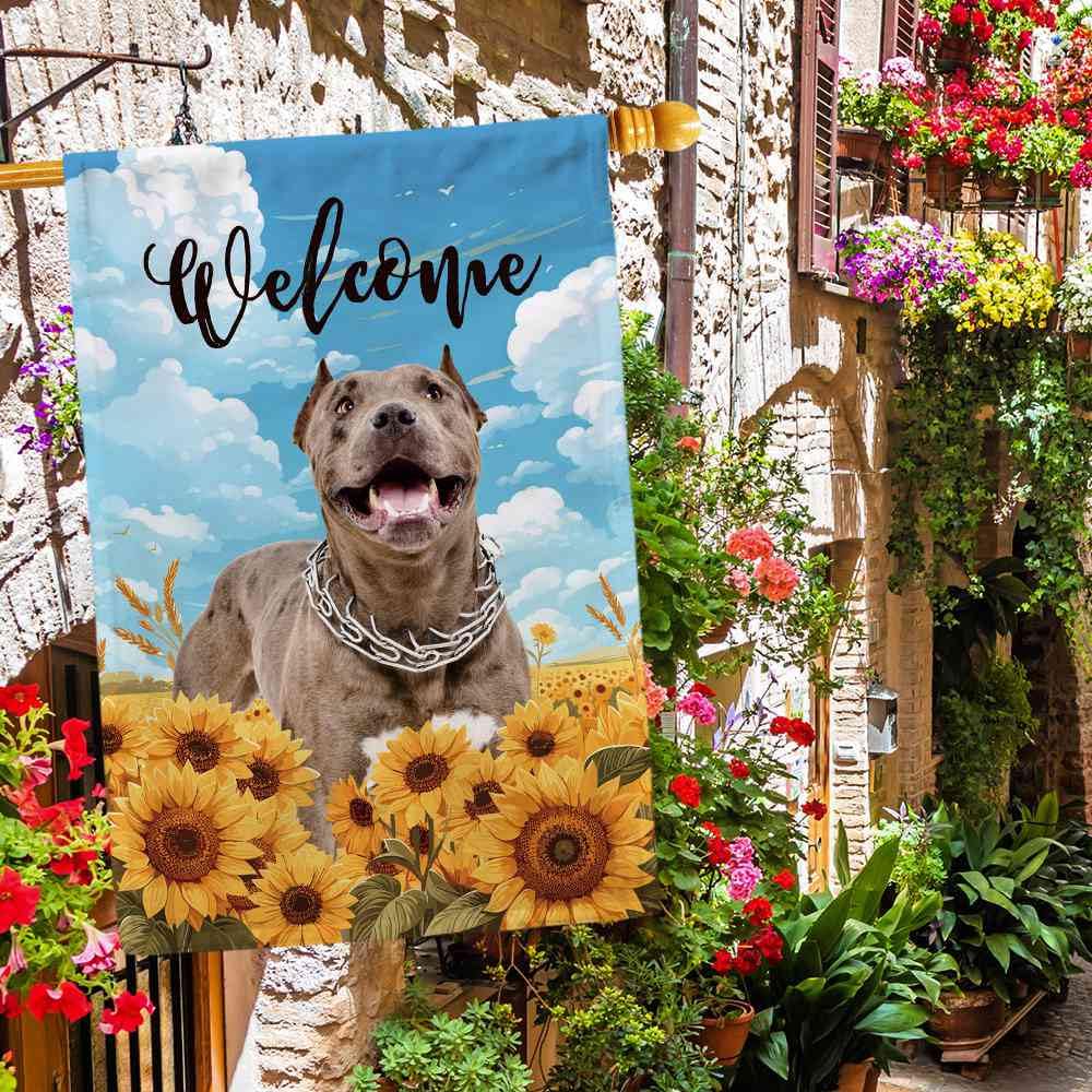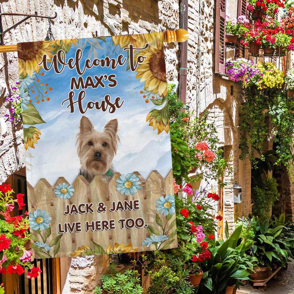 GABSHAIM Gartenflagge, Motiv: Yorkshire Terrier, Yorkie, Willkommens- Sonnenblume, Hund, Der In Den Blumensträuchern Trinkt, Für Den Außenbereich, Hof, Heimdekoration, Banner, 32,5 X 45,7 Cm