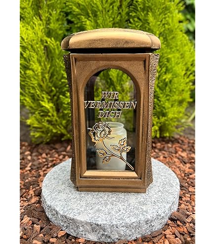 Material: echter Granit, hochglanzpoliert Maße Lampe: Höhe 22 cm, Durchmesser 15 cm; Maße Sockel: Länge/Breite 20x20 cm, Höhe 5 cm Diese bieten wir Ihnen auch in unserem Shop an. zu verwendende Kerzenmaße: Höhe 13 cm, Durchmesser 6,5 cm). Tipp: Befestigen Sie die Grablampe am Grabmal einfach mittels Baukleber (in jedem Heimwerkermarkt zu kaufen), um Diebstahl vorzubeugen. Der Lampenkorpus besteht aus Messing farbenem Aluminiumguss in Antikoptik. Durch die sehr glatte Oberfläche setzt sich weniger Schmutz an. raquo; designgrab Alu Grablampe mit Granit Sockel 20x20x5 cm, aus messingfarbenem Aluminium in Antikoptik und Granit Schwedisch Black SS1 schwarz in Antikoptik Grablampen Grableuchte Grablaterne Grablicht Grabschmuck Friedhofslaterne Friedhofslicht Friedhofslampe Friedhofsleuchte Grablicht KOKA Dekoobjekt Grab-Lampe mit Grab-Sockel Granit Oliven Grün, Grabschmuck, Untersetzer, Grab-Licht, modern, hochwertig, mit Glastür, witterungsbeständig und robust Diese Grablampe wird in der EU gefertigt und ist garantiert ohne Kinderarbeit! Wir bieten Ihnen eine Übersicht von aktuellen Deals und Rabatten für clevere Einkäufe. Die Gläser sind aus leicht getöntem und gehärtetem Glas. absolut witterungsbeständig, kann auch im Winter draußen gelassen werden