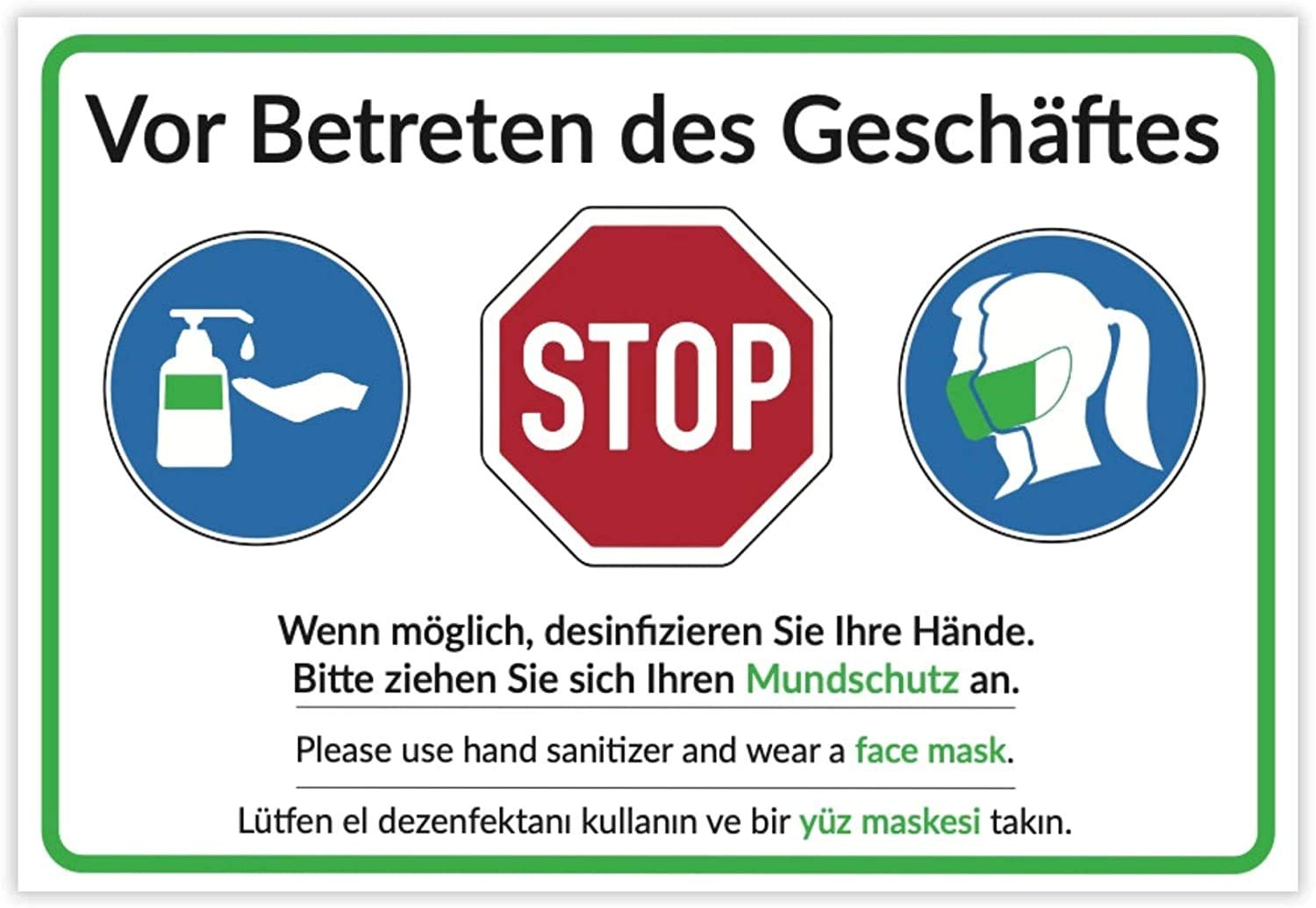 🔆 ☂️ UV Digitaldruck, CMYK / 1000 dpi (keine Prägung / kein kaschierter Aufkleber) Aufkleber Mundschutz Tragen Beachten Sie, Bitte Desinfizieren Sie Ihre Hände, Zeichenvektor Corona Test Waschen sie ihre hän poster sign mit arzt und alkohol gel Wenn möglich, desinfizieren Sie Ihre Hände. Waschen sie ihre hände poster design mit arzt und alkohol gel... Please use hand sanitizer and wear a face mask. Kauf Desinfizieren Sie Ihre Hände schild | | DE-M2822 Lieferzeit: Versand innerhalb von zwei WerktagenDiese Gebotsschild ist ideal für den Einsatz in Bereichen, in denen Hygiene oberste Priorität hat. Die auffällige blaue Hintergrundfarbe mit weißem Text sorgt dafür, dass die Anweisung nicht übersehen wird. Bitte ziehen Sie sich Ihren Mundschutz an. 🔧 Hinweisschild kann auch nachträglich noch mir Bohrlöchern versehen und direkt an eine geeignete Wand montiert werden. Möchten Sie Schraublöcher oder doppelseitiges Klebeband, können Sie dies einfach auswählen. ✏️ Text: Wenn möglich, desinfizieren Sie Ihre Hände. Platzieren Sie diese Gebotsschild an Eingängen von Krankenhäusern, Schulen oder Fitnessstudios, um die Gesundheit und Sicherheit aller zu gewährleisten.