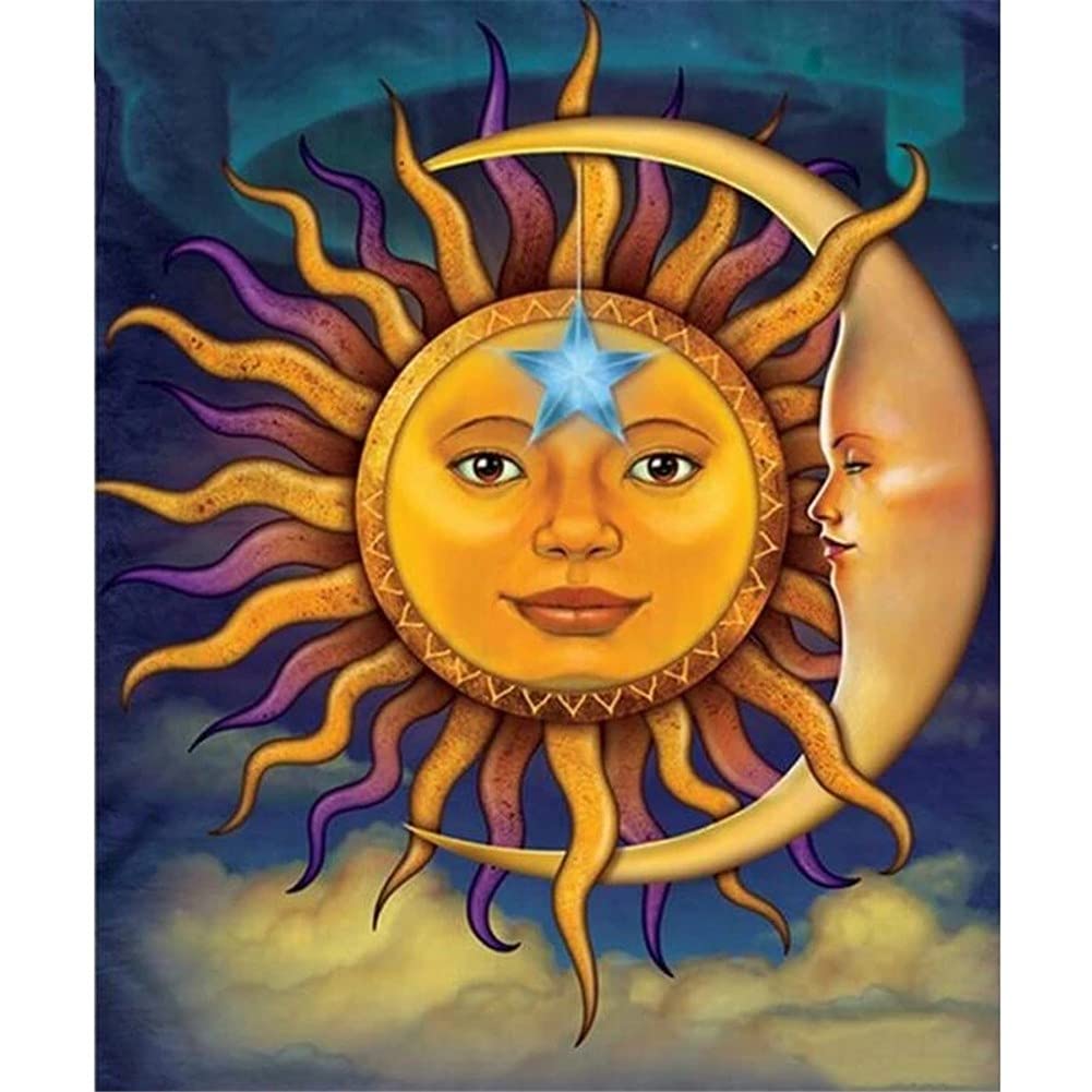 Diamond Painting Kits, Sonne Mond 5D Diamant Painting Bilder, DIY Diamant Malerei Voll Set Erwachsene/Kinder Malen Nach Zahlen Crystal Stickerei Kreuzstich Art Home Wall Décor Square Drill,50x70cm