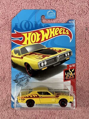 Hot Wheels - '71 Dodge Charger Die Cast Car - 2020 Factory Set - HW This yellow '71 DODGE CHARGER is 6/10 in the 2020 HW Flames collection. Approximately 1:64 scale, the '71 Dodge Charger measures around 3.1-inches long