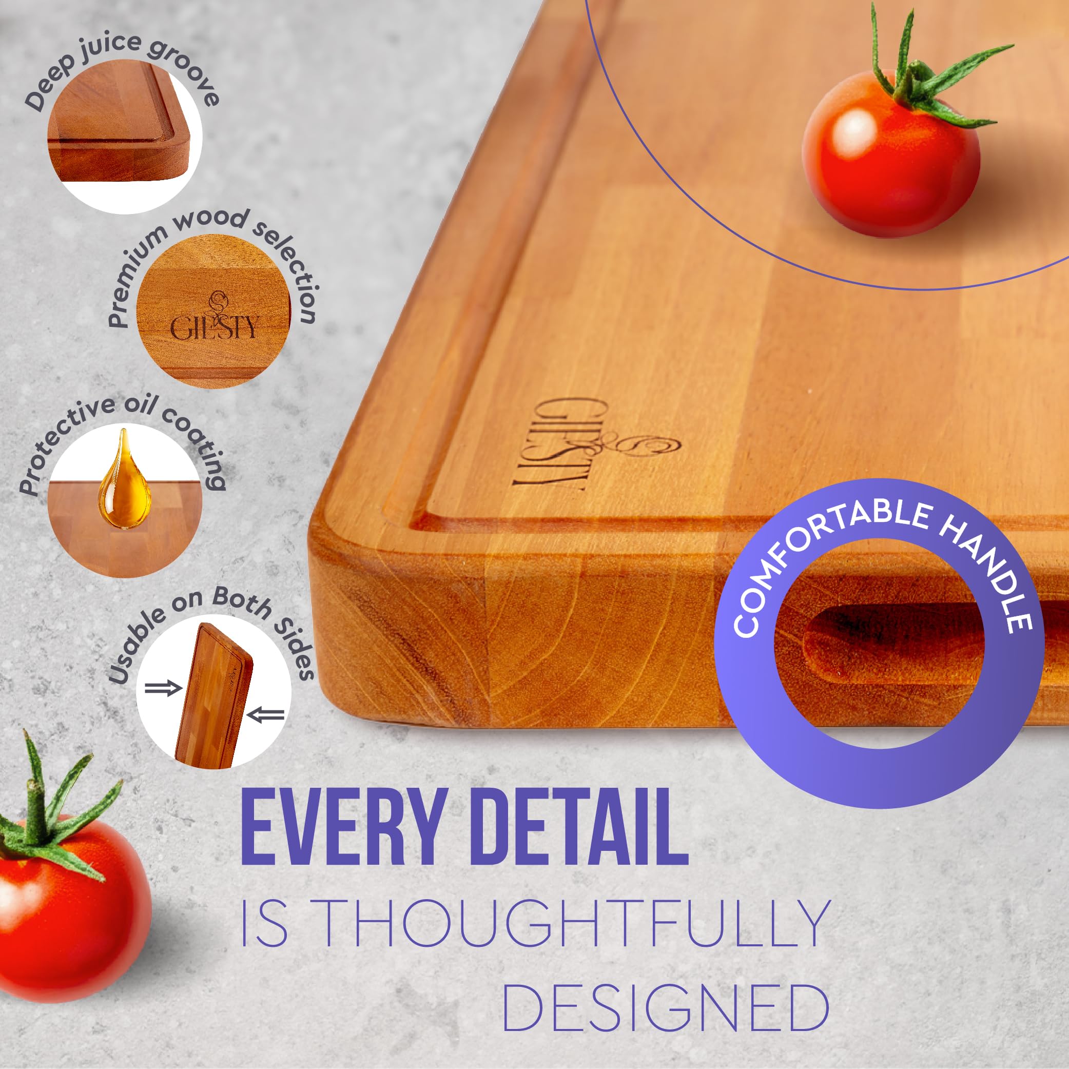 Giesty® Schneidebrett Für Die Küche, Reversibles Holz-Hackbrett Mit