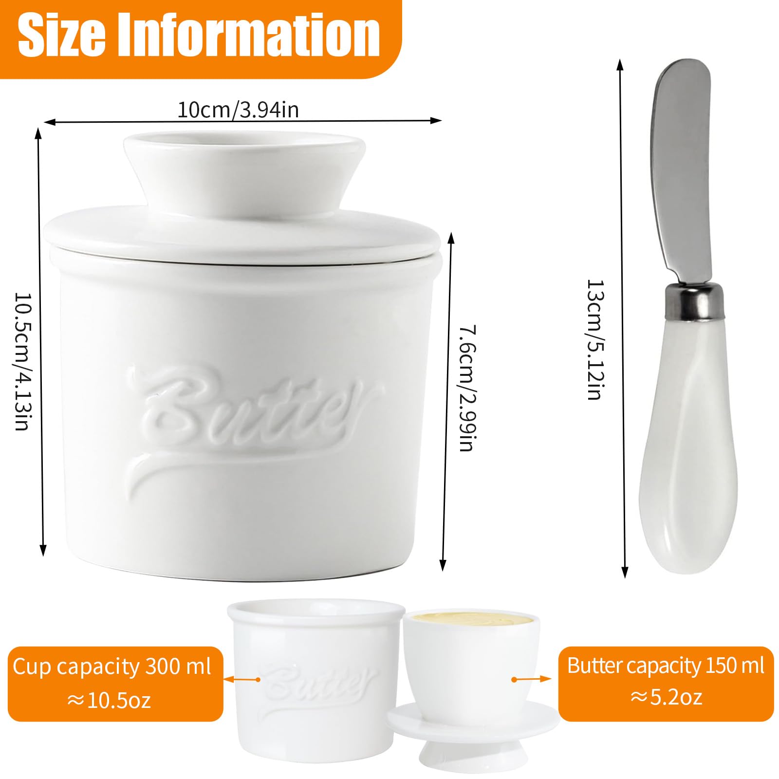 Diikoo Porzellan-Buttertopf Mit Messer, Keramik-Butterdose Mit Deckel, Französischer