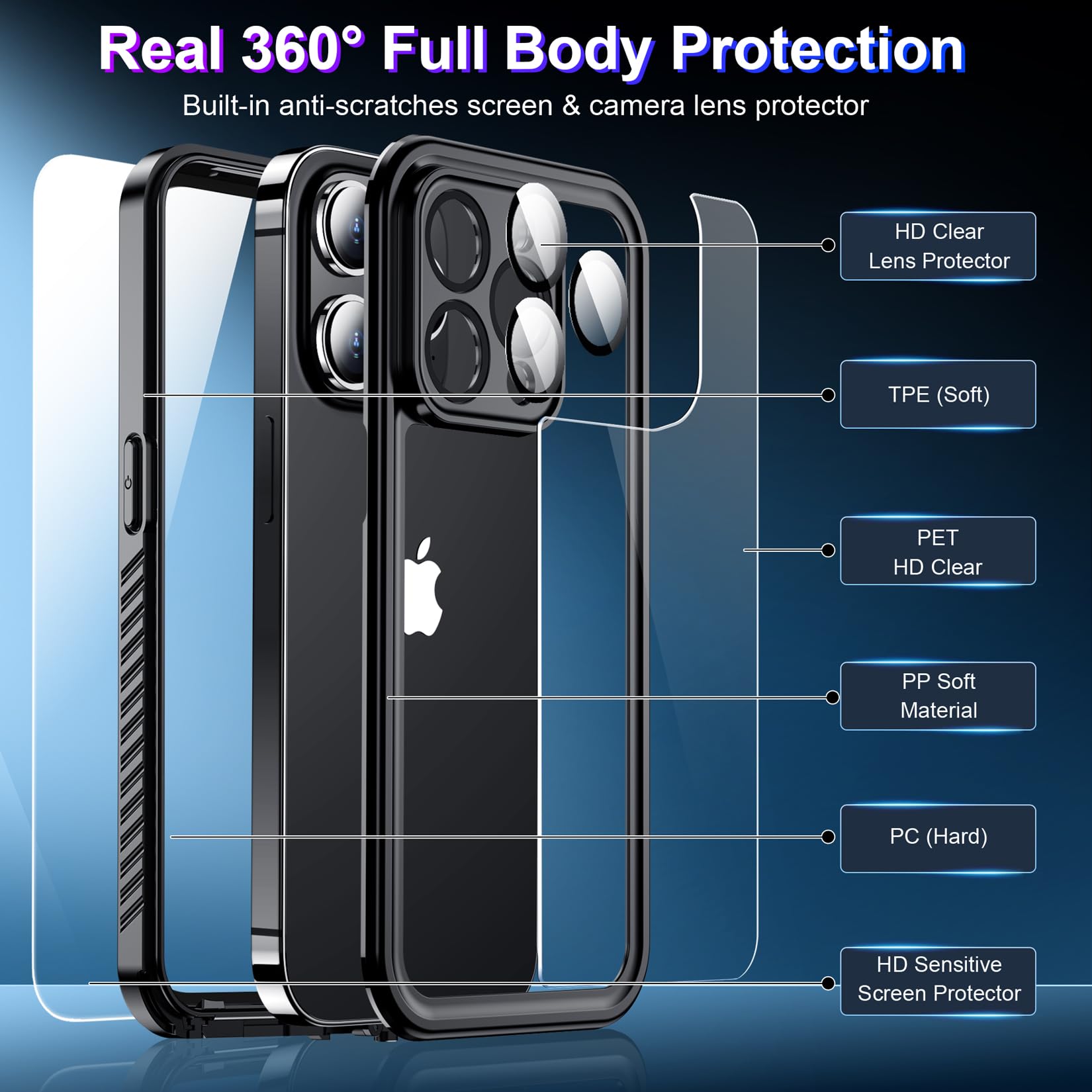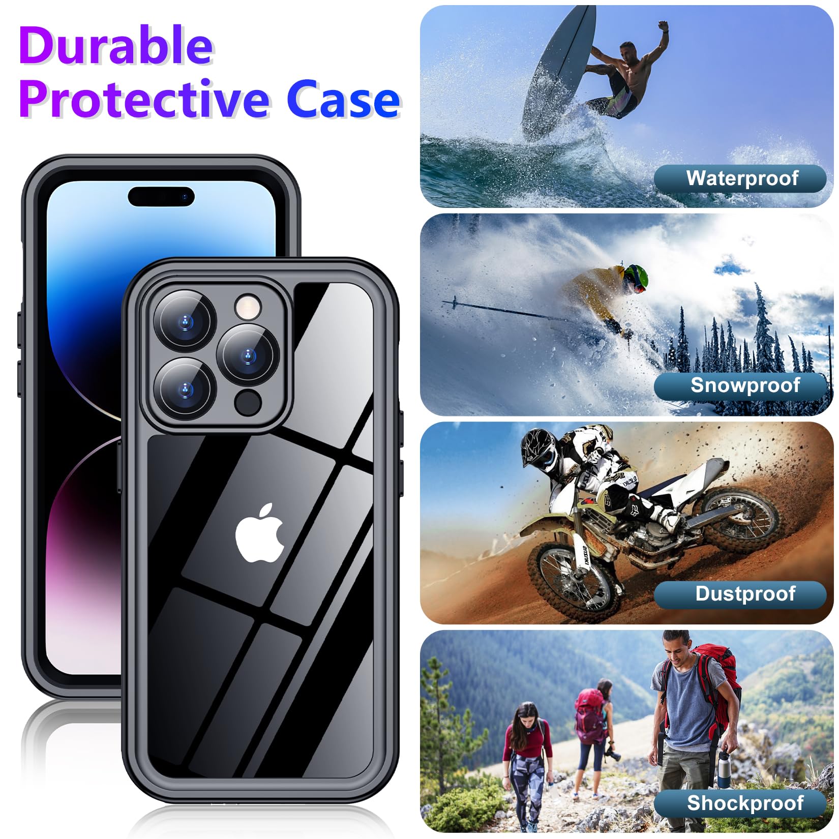 Schutzhülle Für IPhone 14 Pro Max, Wasserdicht, Glas-Kameraschutz Und Integrierter Displayschutz, Stoßfest, IP68 Unterwasserschutz, Staubdicht, Sturzsicher, Handyhülle Für IPhone 14 Pro Max 6,7 Zoll