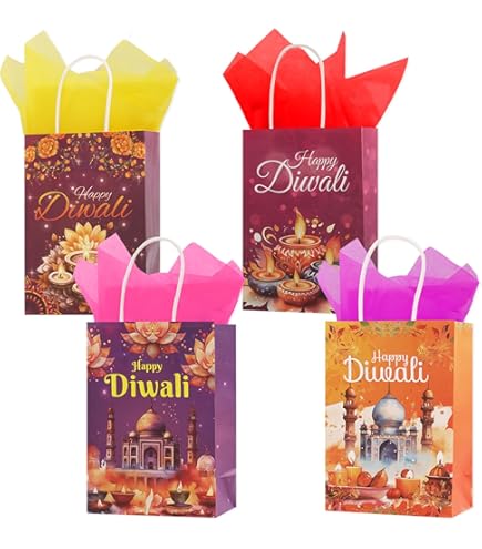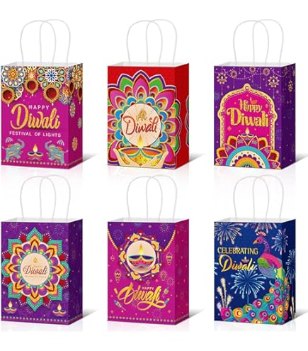 Cholemy 18 Stück Happy Diwali Papiertüten Mit Griffen, Diwali Party