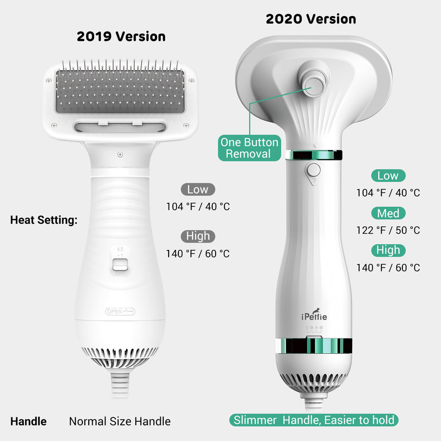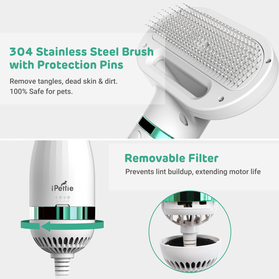 Dieser Haartrockner ist kompakt und wiegt nur 396., 9 g. Eingangsspannung: AC 110V / 60HZ , Leistungsaufnahme 300W , Kabellänge: 2 m., Farbe: Weiß. Verbessert, Trocknen während der Fellpflege – Haben Sie immer Schwierigkeiten, die Haare des Haustieres gleichzeitig nach dem Baden zu trocknen und zu bürsten? iPettie Haustiertrockner ist die Lösung für Sie. Laden2 In 1 Tragbarer Hundetrockner Haustier Haartrockner Und Fell Kamm Bürste Hund Katze Pflege Trockner Einstellbare Temperatur Wind Geschwindigkeit Haustier Bürste. Der Pet Hair Dryer 2 mit Slicker Brush Grooming ist ein innovatives und effizientes Pflegegerät für Katzen und Hunde. Er kombiniert einen leistungsstarken Haustiertrockner mit einer integrierten Slicker Brush , sodass Sie Ihr Haustier ganz einfach gleichzeitig trocknen und pflegen können Und Ihre Hände werden sich nicht verbrennen, da das doppelwandige Design die Hitze abschneidet. Ein herausnehmbarer Filter verhindert Fusselbildung und verlängert die Lebensdauer des Motors. 1 x Fell- und Haarentferner., 1 x Bedienungsanleitung (evtl. 100% Sicherheitsgarantie - Der Haartrockner schaltet sich automatisch aus, wenn er überhitzt. 3 Heizstufen - Niedrig/Mittel/Hoch (37., 8 °C - 60., 0 °C / 40 ℃ - 60 ℃) * Hinweis: Dieser Trockner verwendet eine niedrigere Wärmeeinstellung als ein menschlicher Haartrockner, um Ihr Haustier vor Verbrennungen zu schützen., * Unterwolle Bürste Hund Dog Clipper Plus Hundeschermaschine - Professionelle Fellpflege Für Hunde Piddipet Ionbrush Schlanker Griff und tragbar: Der verbesserte schlanke Griff macht es einfach zu halten und zu verwenden. Zupfbürste mit dicht verpackten Borsten: engere und engere Lücke zwischen den Borsten, besser geeignet für Haustiere mit kürzerem Fell und weniger dickerem Fell. Darüber hinaus können Sie die Schuppenhaare innerhalb von 1 Sekunde aus der Bürste entfernen, dank des Ein-Knopf-Haarentfernungsdesigns. LadenTierhaartrockner, 3 Heizstufen, Ein-Knopf-Haarentfernung, tragbares Hundegebläse, professionelle Heimpflege Pelztrocknen für kleine große Katze Hund tw. Einer der vielen verfügbaren Artikel aus unserer Kämme & BürstenAbteilung hier bei Katzenhaartrockner - Hundeföhn mit Zupfbürste