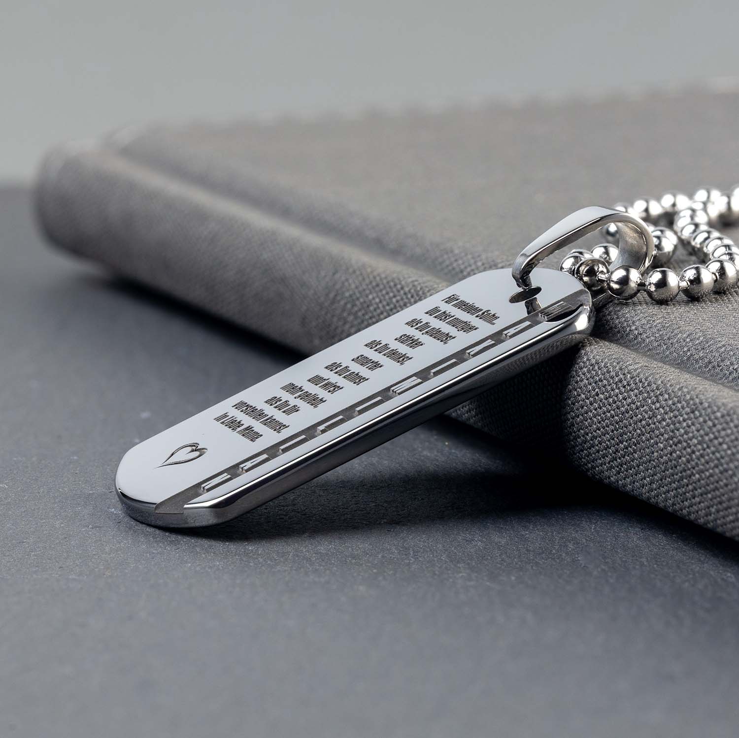 Dog Tag Kette Herren Personalserte Kette mt Gravur Mltär Halskette Es Ist Leicht Zu Anziehen Und Eignet Sich Für Jungen Und MäNner. 🎁【Perfektes Geschenk】:Inspirierende Nachricht Eingraviert Zu Ermutigen Sie Ihr Kind, Lassen Deiner Sohn Wissen Bescheid Gerade Wie Sehr Du Sie Liebst. ❤【Über den Service】 - Wir verpflichten uns, Qualitätsprodukte und Dienstleistungen für jeden Kunden zu bringen, wenn Sie irgendwelche Probleme haben, zögern Sie nicht, mit uns in Kontakt zu treten, wir werden Ihnen helfen, das Problem innerhalb von 24 Stunden zu lösen. 🎁【Inspirierende Halskette】: Dog Tag Kette Herren Mit Gravur Dem Positiven Text : Fur meinen Sohn., ., ., Ich liebte dich damals,ich liebe dich nun,ich liebe dich morgen UND ICH WERD'S IMMERTUN!, ., 🎁【Sohn Geschenkidee】:Diese Hundemarke AnhäNger Macht Ein Schönes Ermutigungsgeschenk Für Sohn, Ideal Für Sohn Abschlussgeschenk, Geburtstagsgeschenk Für Ihn, Sohn VerläSst Das Haus Geschenk, ZurüCk Zur Schule, Weihnachtsgeschenk Für Sohn. Für Söhne – Liebeselement Ein Geschenk für meinen Sohn/Halskette des Sohnes Geburtstagsgeschenk Abschlussgeschenk Zurück in die Schule Geschenk Weihnachtsgeschenk Partygeschenke Ein wunderschönes und einzigartiges Geschenk für Ihre Liebsten mit einer Botschaft! Dog Tag Anhänger mit Gravur und Halskette aus Edelstahl: Mein Sohn wo auch immer Dich Dein Lebensweg hinführt, wünsche ich Dir, dass Du immer IN SICHERHEIT BIST. Lassen Sie Diese Liebeskette Ihre Sohn Mahnung Sein, Er Wird Mehr Als GlüCklich Sein Dies Zu Haben. Metall: 316L Chirurgenstahl, hypoallergen. Christliche Geschenke TIMANDO Dog Tag Kette Herren Personalisiert, Militär Halskette Mit Weihnachtsgeschenke Für Eltern Hugo Boss Dog Tag Kette Orlado für Herren aus Edelstahl 1580354