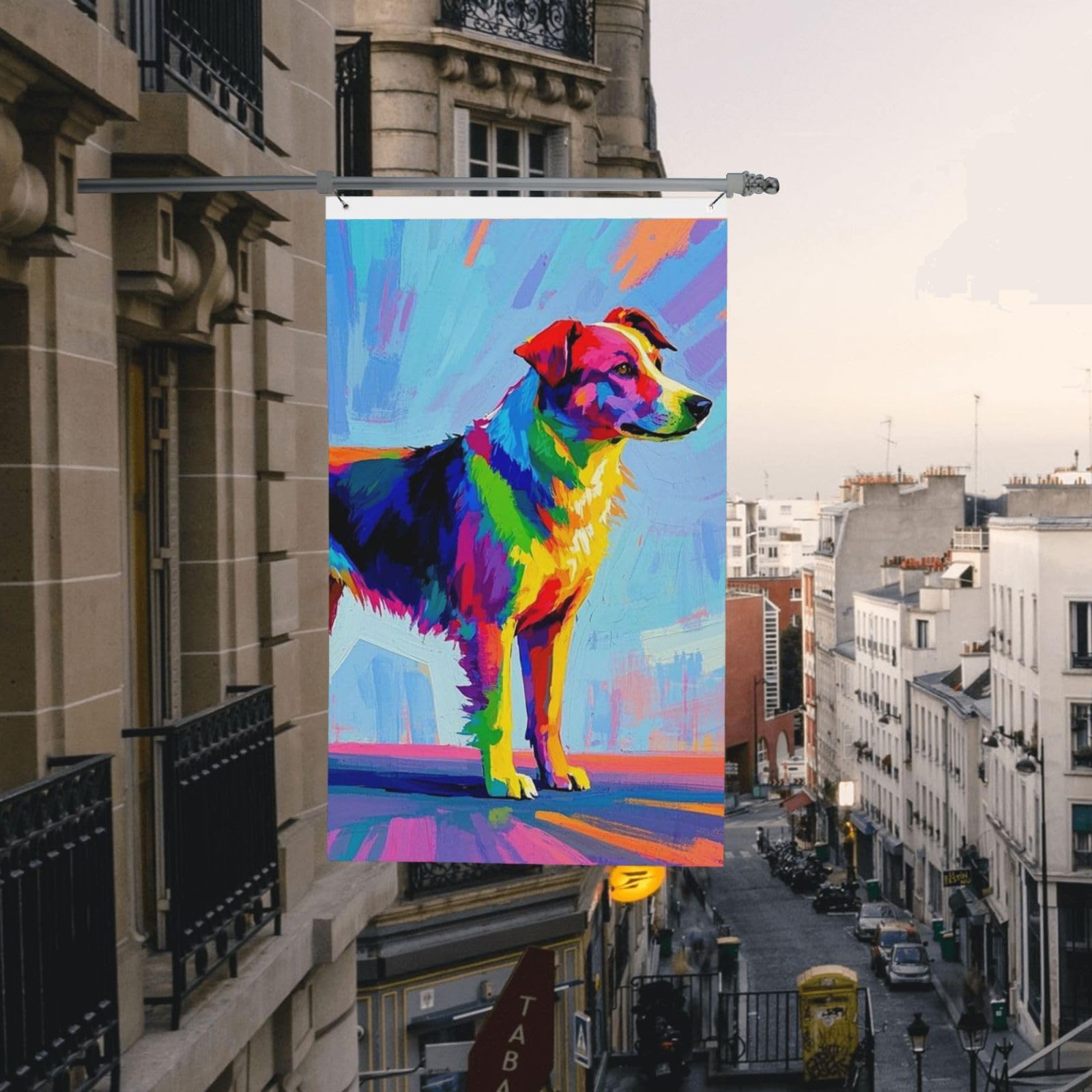 Bunte Hundegemälde-Flagge, 90 X 152 Cm, Doppelseitig, Kein Verblassen, Gartenflagge, Vertikale Saisonale Hofflagge Mit Messingösen, Outdoor-Banner, Dekoration, Individueller Fotohintergrund Für