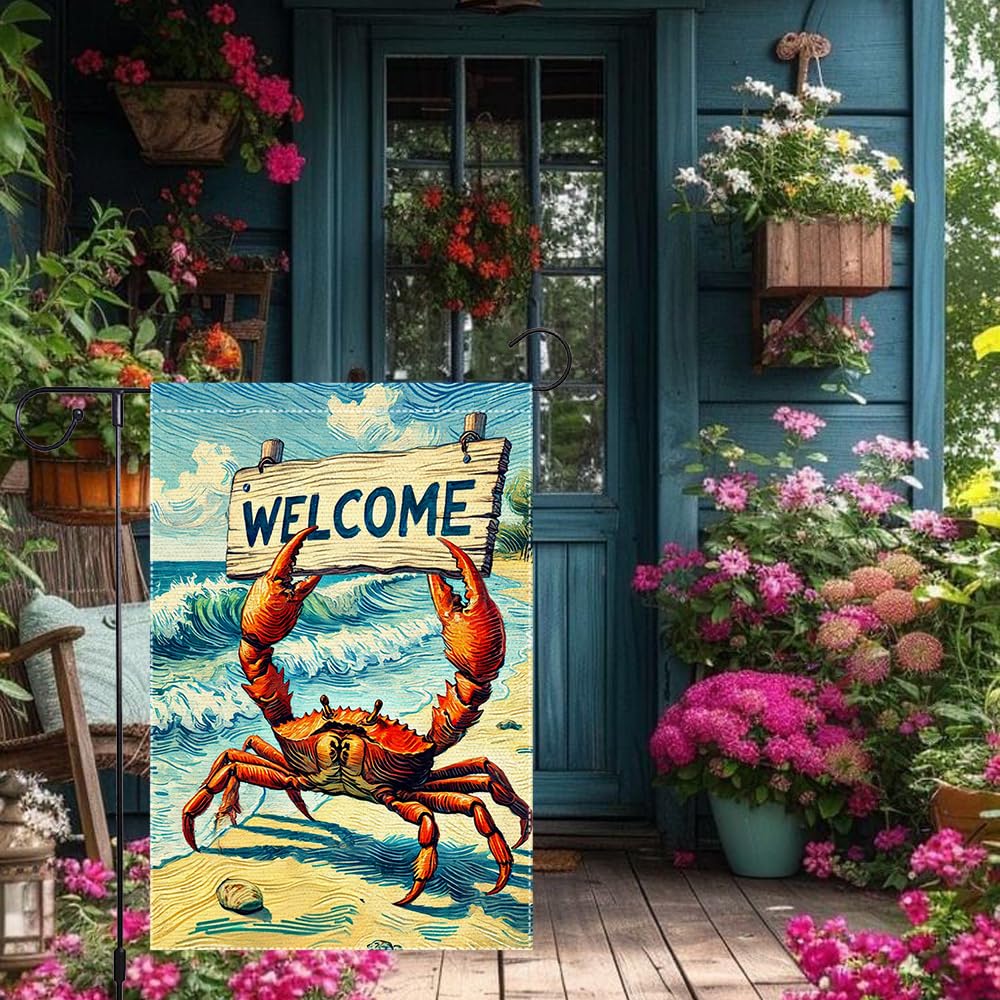 Gartenflagge, Motiv: Willkommens-Krabbe, Vertikal, Doppelseitig, Klein, Sackleinen, Strand, Terrasse, Rasen, Urlaub, Hof, Outdoor-Dekoration, 30,5 X 45,7 Cm