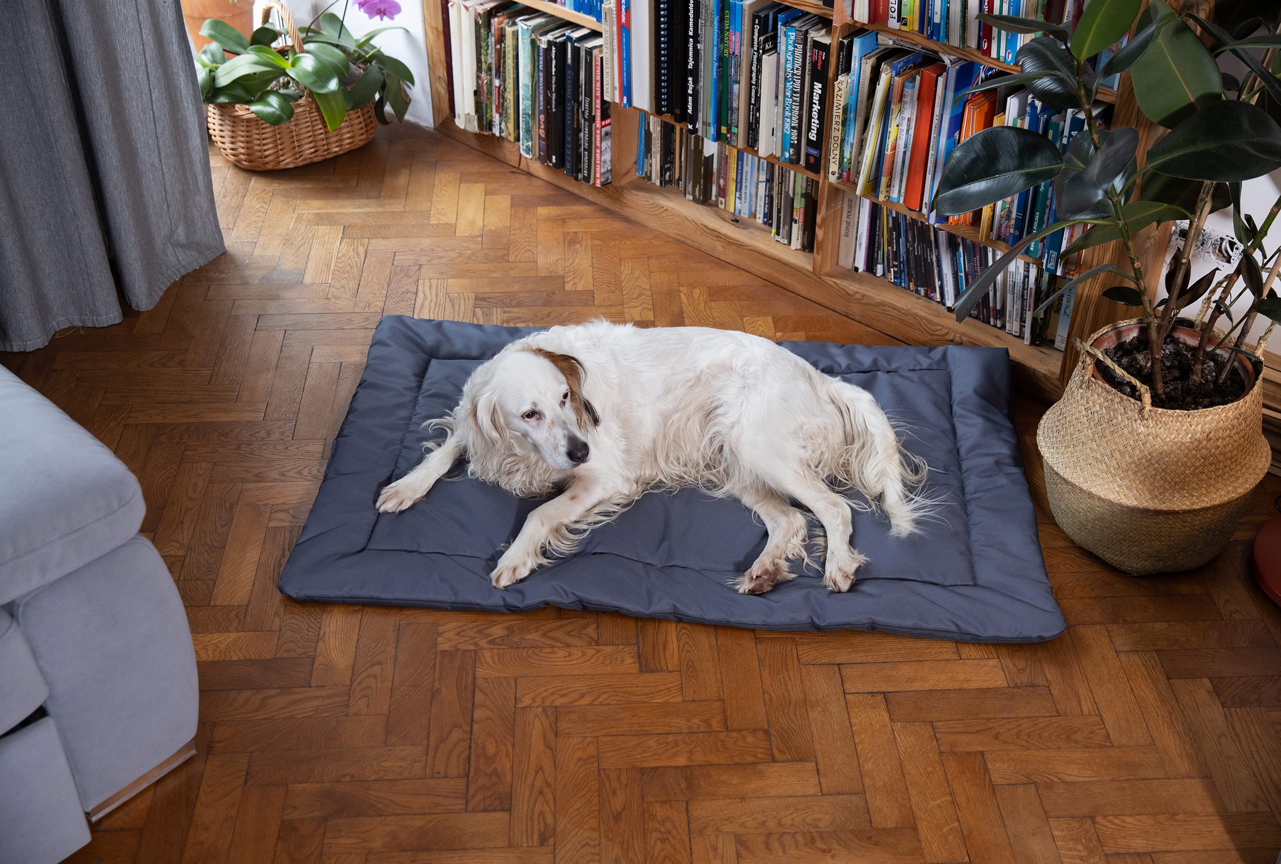 Hundematte Mit Liegefunktion Salla Hundebett, Doppelseitige Hundematte, Velours, Waschbares Hundebett Kleine Hunde Die Haare lassen sich leicht mit einem Staubsauger oder einer Reinigungsrolle entfernen. Kann bei 30°C in der Maschine gewaschen werden, ohne zu schleudern Hochwertige Qualität Die Fäden, die wir zum Nähen verwenden, bestehen aus 100 % Polyesterseide. Sorgenfrei einkaufen: Die von uns verwendeten PANAMA und Velours -Polsterstoffe verfügen über ein internationales Zertifikat, das bestätigt, dass die Produkte frei von Tensiden, wie Chlorphenole, Formaldehyd oder verbotene Azofarbstoffe, sind. ORTHOPÄDISCHES Hundebett - Das Bett hat auf der Unterseite eine orthopädische Matratze mit einer Dicke von 5 cm, die Ihnen helfen, schwere Hunde ins Bett zu betreten und gleichzeitig eine sehr gute Gewichtsverteilung des Hundes bis zu 80 kg bietet. Durch die Verwendung einer Kaltschaummatratze ist das Bett ideal für Seniorenhunde mit Bewegungsproblemen geeignet Der Unterstand wird von Hand genäht, wobei auf die kleinsten Details geachtet wird. Die Matte kann zusammengerollt und dank des praktischen Tragegriffs leicht transportiert werden, Made in Europe Das Produkt wird aus den besten Materialien hergestellt. Der Schnitt und die Farben werden auch die anspruchsvollsten Kunden zufriedenstellen. Die Unterseite aus einem Titan-ABS-Gewebe mit rutschfesten Eigenschaften. Waschbar & wasserdicht: Gewöhnlicher Alltagsschmutz kann mit einem feuchten Schwamm oder Tuch entfernt werden. Die Unterseite des Bettes besteht aus einem wasserdichten Stoff, der sich durch seine Strapazierfähigkeit und hohe Beständigkeit gegen Abrieb, Reißen und mechanische Einwirkungen auszeichnet Hochwertige Qualität: Die Fäden, die wir zum Nähen verwenden, bestehen aus 100 % Polyesterseide. Orthopädisches Reisebett Hund – Die 15 besten Produkte im Vergleich Details: Gesamtmaß 75 x 55 cm, Seite 1 – Graphit wasserdicht PANAMA, Seite 2 – Graphit Veloursstoff. Sie zeichnen sich durch eine sehr hohe Reißfestigkeit aus und erfüllen die Anforderungen der europäischen Norm. Bei stärkeren Verschmutzungen und zum Auffrischen empfehlen wir einen 30 C Schleudergang.