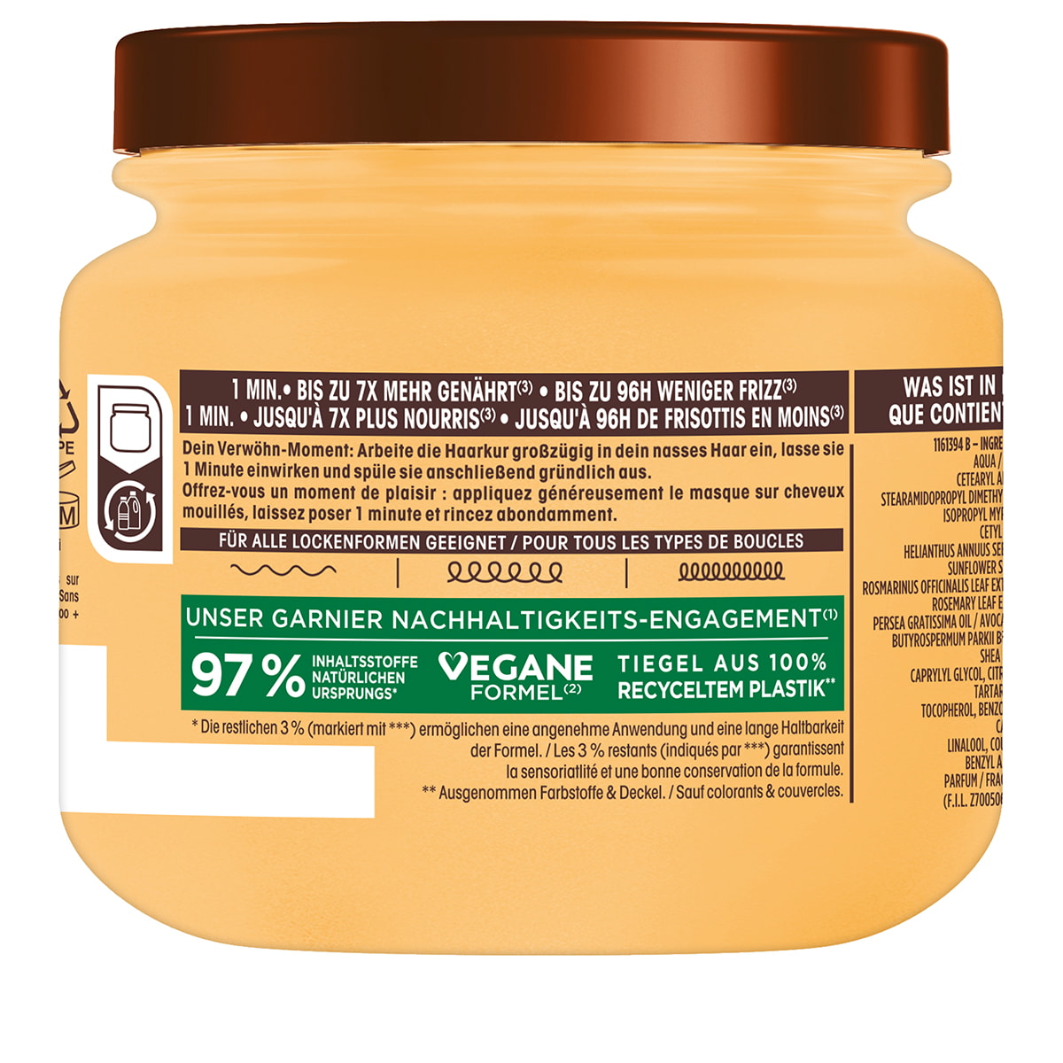 Nach dem Shampoo großzügig bis zu den Spitzen auftragen. Gebrauchsanweisung Tragen Sie das Conditioner großzügig nach dem Shampoo auf, lassen Sie es 3 Minuten einwirken und spülen Sie es dann aus. Das Ergebnis: Ihr Haar wird repariert, gepflegt und tief gelockert. Avocadoöl hat Weichmachereigenschaften und Karitébutter hat hochnahrhafte Wirkungen. ttttttttin cremiger und cremiger Textur, die Ihr Haar nicht beschwert. Extrem leicht zu frisieren, erhalten Sie unwiderstehliche Weichheit und Glanz und sind gesund. Produktbeschreibung Mit Avocadoöl und Karite-Butter für sehr trockenes oder gefrissenes Haar. Wahre Schätze Avocado-Öl & Sheabutter Haarpflege-Serie Garnier Maske Gesicht Garnier Ultra Doux Avocado Oil & Shea Butter To Very Dry &Frizzy Garnier Face Mask Extrem einfach zu frisieren, erhält unwiderstehliche Weichheit und Glanz und ist voller Gesundheit. Glänzendes Haar durch natürliche Extrakte.Preis: 3,47 €.Inhalt: 250 ml.Lieferung in 2 Tagen. GARNIER Coloration Garnier Nutrisse Ultra Crème, Packung, 3-tlg., Mit Glänzendes Haar durch natürliche Extrakte. Preis: 3,47 €. Inhalt: 250 ml. Lieferung in 2 Tagen