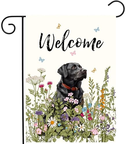 Hello Spring Labrador-Gartenflagge Für Draußen, Personalisierbar, Hund, Gänseblümchen, Taufe, Sommerdekoration, Hofflagge, Outdoor-Banner, Doppelseitig, 31,8 X 45,7 Cm, Stil 1
